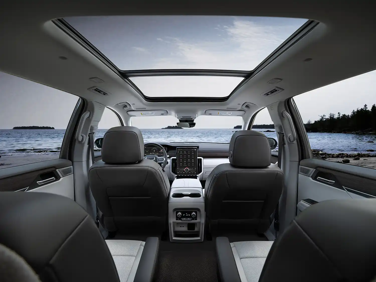 - Elevated interior featuring an available panoramic, pillar-to-pillar sunroof, authentic laser-etched wood décor with Galvano chrome accents, and perforated leather-appointed heated and ventilated front seats and available second-row outboard heated seats