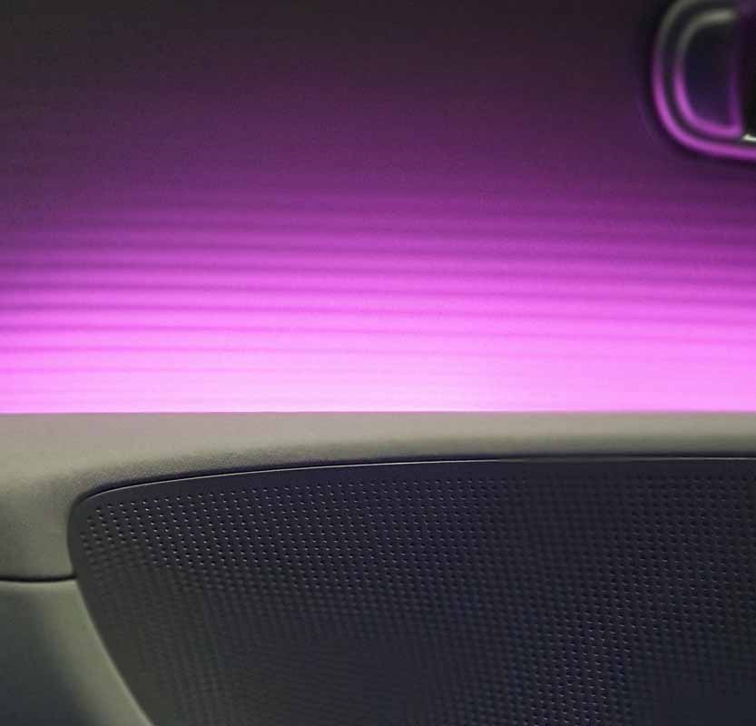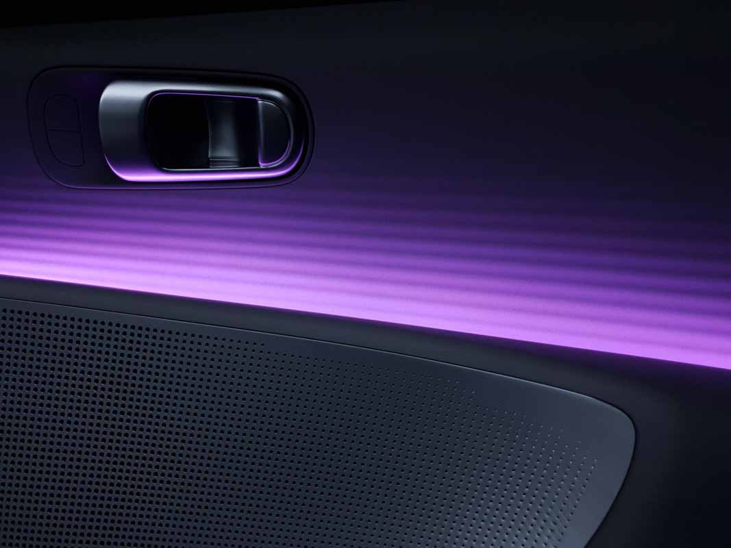 Dual Colour Ambient Lighting provides overall illumination for IONIQ 6 interior. Users can choose from a spectrum of 64 colours and six dual colour themes developed by colour experts to help drivers and passengers feel relaxed and comfortable. The 4-dot Interactive Pixel Lights on the steering wheel enable easy communication between the driver and vehicle.