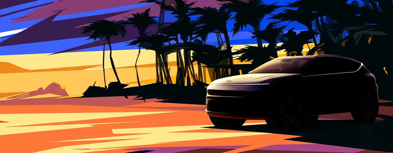 The all-new KONA’s clean, distinctive nose characterizes the front section’s pure volume, which contributes to the model’s smooth aerodynamic performance. The pure volume is highlighted by the stretched Seamless Horizon Lamp, which is pixelated on the EV variant, marking the first Hyundai model with a Pixelated Seamless Horizon Lamp that adds to the EV’s distinctive character. KONA’s use of Parametric Pixels also propagates a distinctive design element from Hyundai’s popular EV lineup.