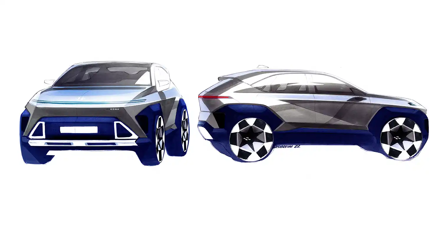 Hyundai Motor Company today unveiled an EV-derived, futuristic design for its new generation KONA subcompact SUV. The upscaled model will be available in four variants, including all-electric (EV), hybrid electric (HEV), internal combustion engine (ICE) and sporty N Line, with a universal architecture for all and unique styling for each*.