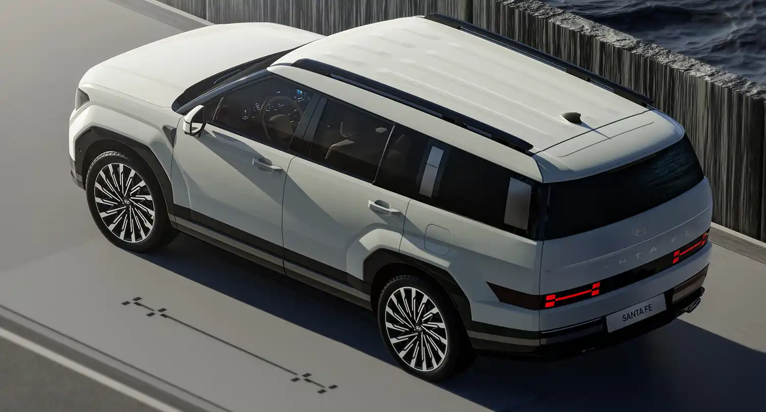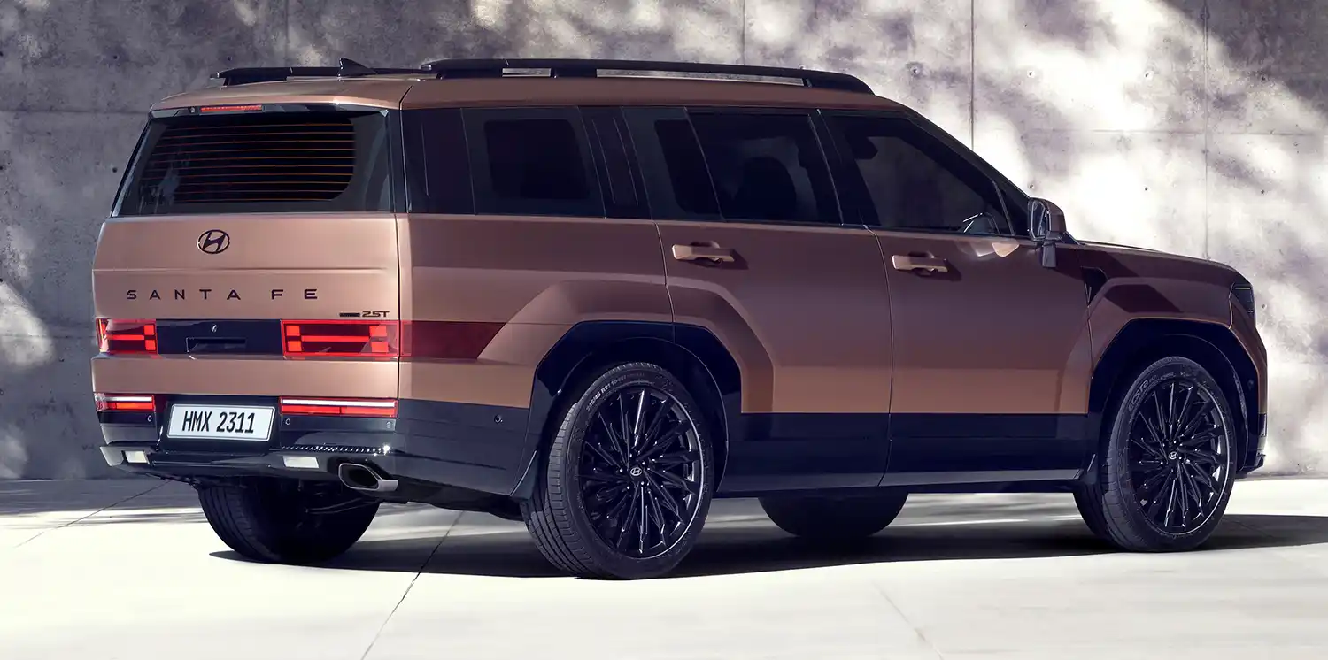 The all-new Santa Fe’s boxy shape and distinctive silhouette are derived from its long wheelbase and wide tailgate area.