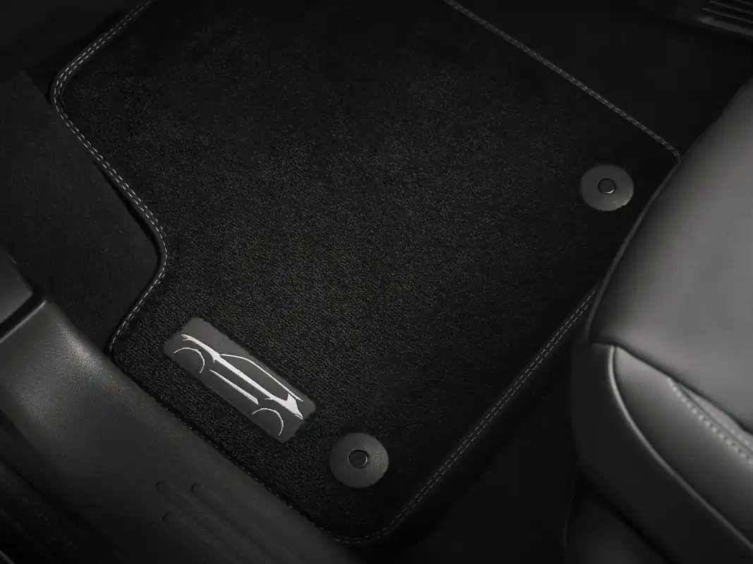 Designed with flexibility and modularity in mind, the central tunnel dividers can be moved to fit the sizes of various objects or even be removed to make space for larger objects. A further useful space is available under the automatic transmission buttons and protected by a folding magnetic cover. In this space, a cell phone can be charged while simultaneously storing a 1.5-liter bottle of water.