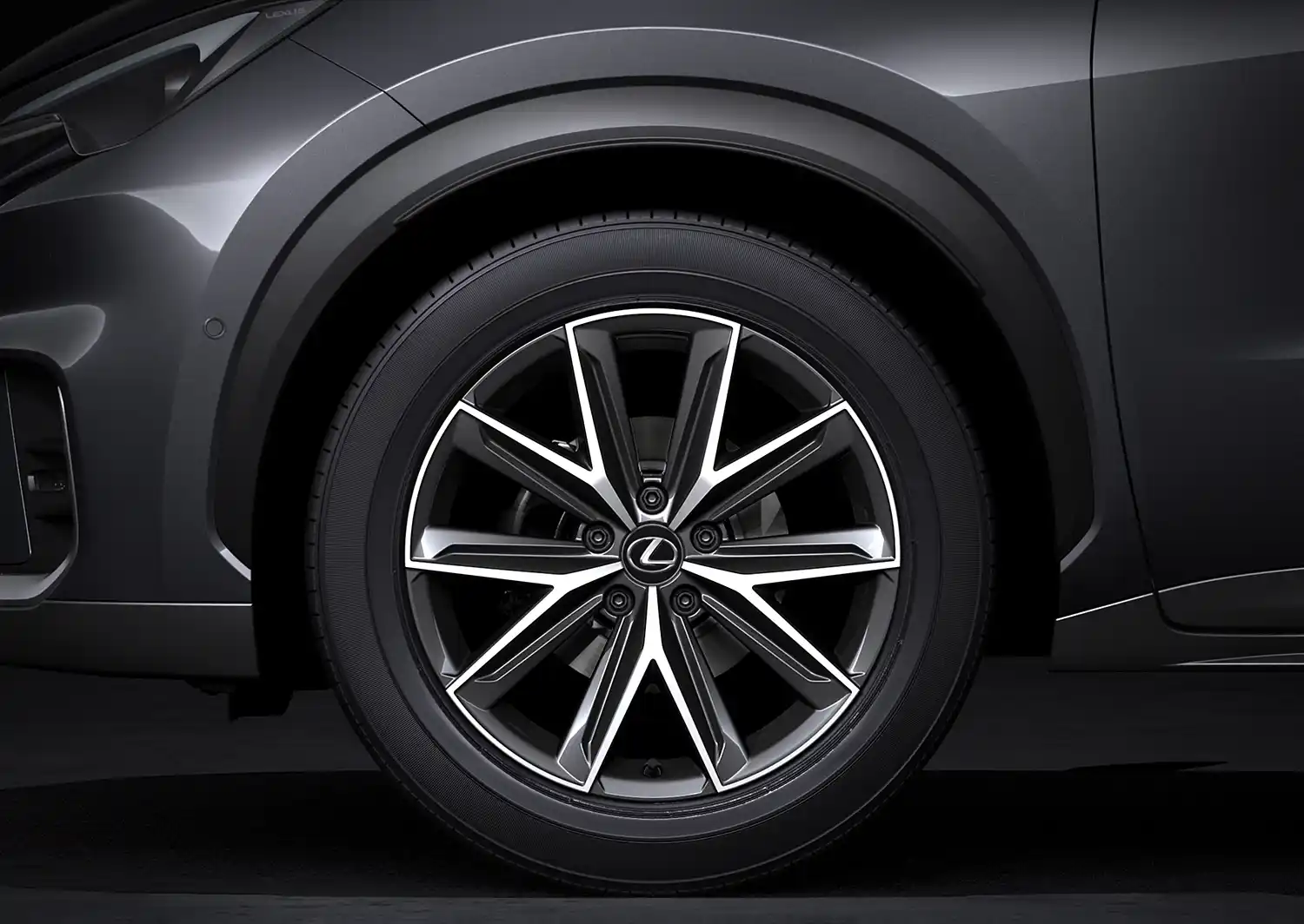 The grille has been unified in a single trapezoid shape, positioned below a narrow aperture that runs beneath the leading edge of the bonnet, linking the slim headlight units. The design draws on the heritage of Lexus’ “Resolute Look.” Introduced with the LF-S concept car of 2003, this became a signature styling cue for Lexus production models from the early 2000s.