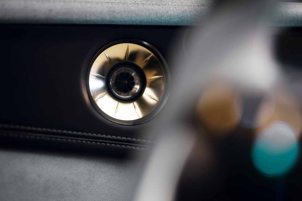 Customers can upgrade to KEF Reference, a 2,160-watt 23-speaker system with Uni-Q and 3D surround sound technology. KEF Reference also features Uni-CoreTM, a pioneering new approach to speaker and subwoofer design, and the Eletre marks its debut in the automotive world. It uses two dual force-cancelling drivers with concentrically arranged and overlapping voice coils, driven by a single motor. This enables high-level performance while reducing the subwoofer or speaker volume significantly. Both KEF Premium and KEF Reference feature partially exposed speakers in the doors, a very technical execution and beautiful design feature.