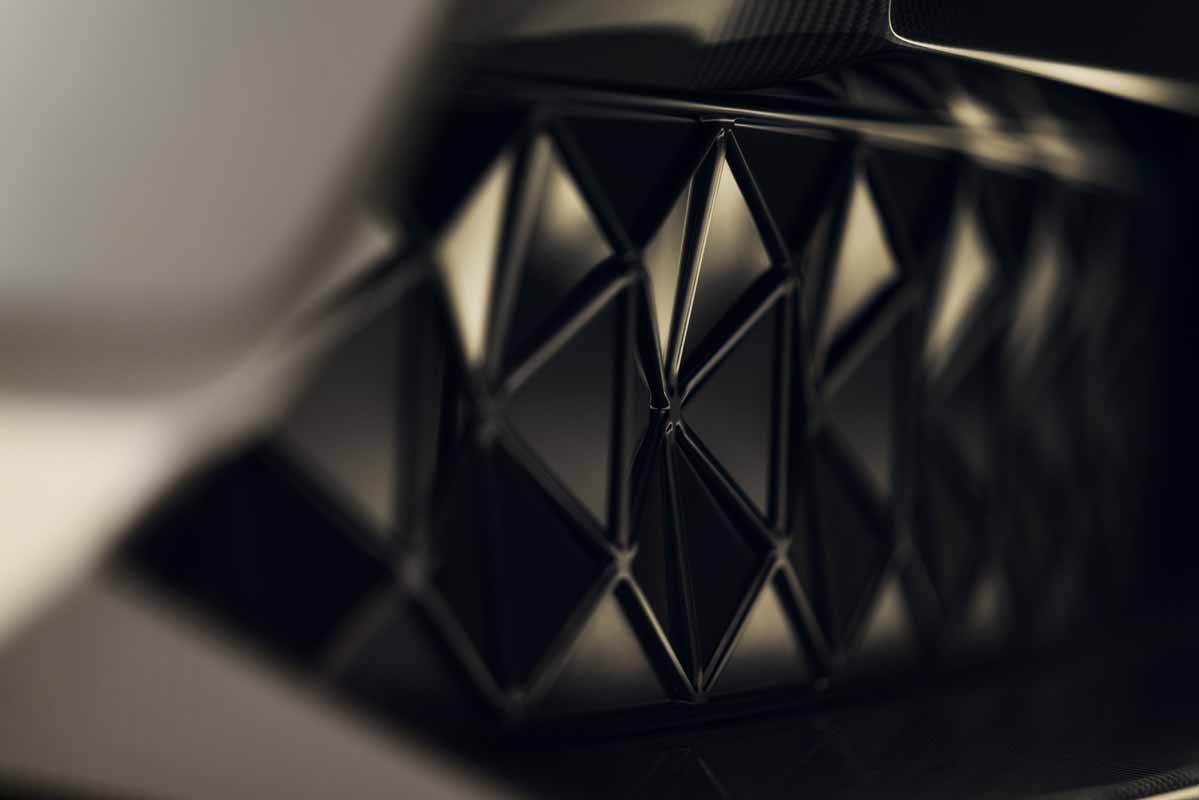 Lower down is the Eletre’s active front grille, a network of interconnecting triangular petals that dominate the central section. Intricately designed, they remain closed when the car is at rest or when there’s a need to reduce drag during driving. They open in a distinctive pattern to feed air into the radiator, allowing the Eletre to ‘breathe’ when cooling of the electric motors, battery pack and front brakes is required. It’s a further example of the car’s porosity and also offers aerodynamic benefits.