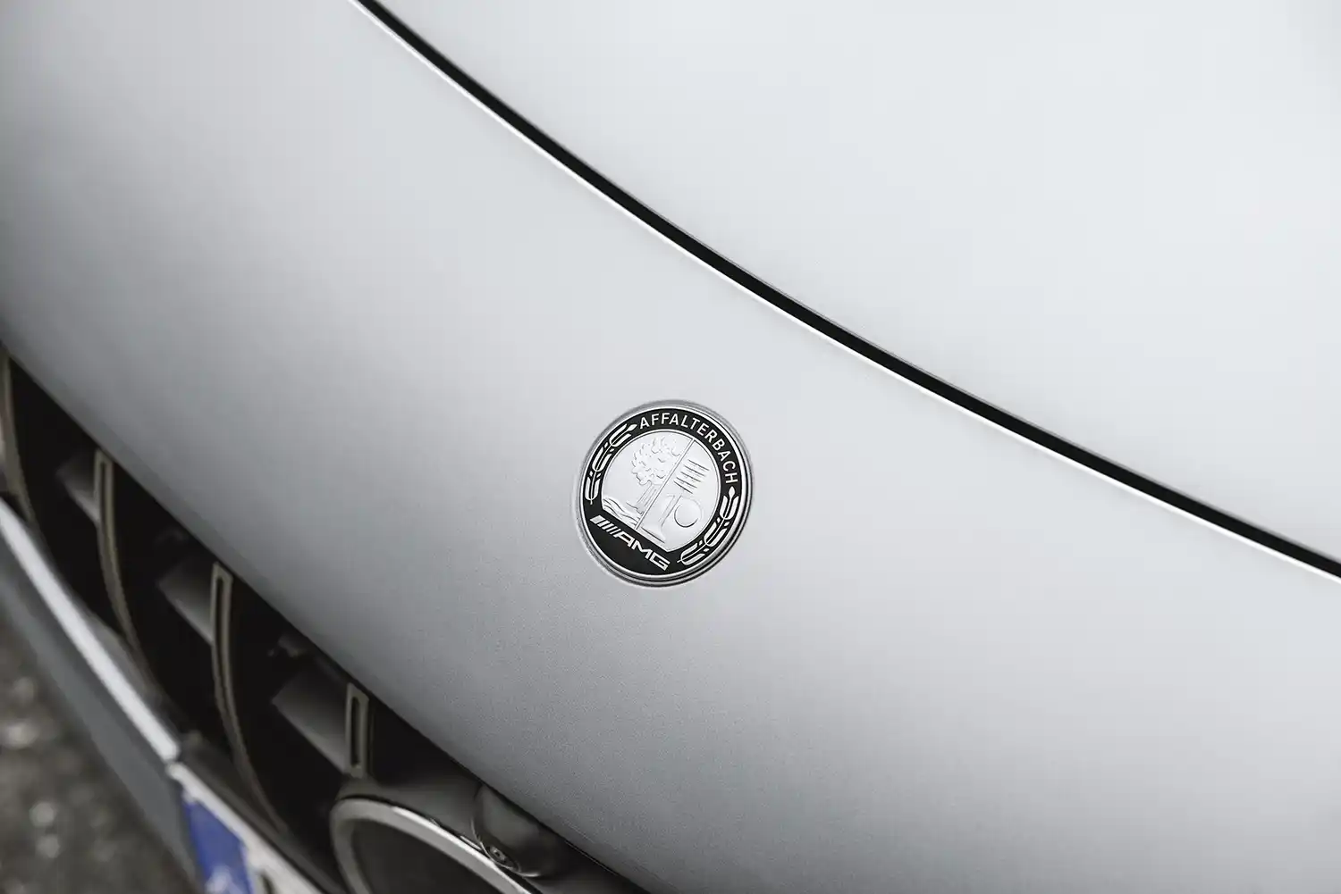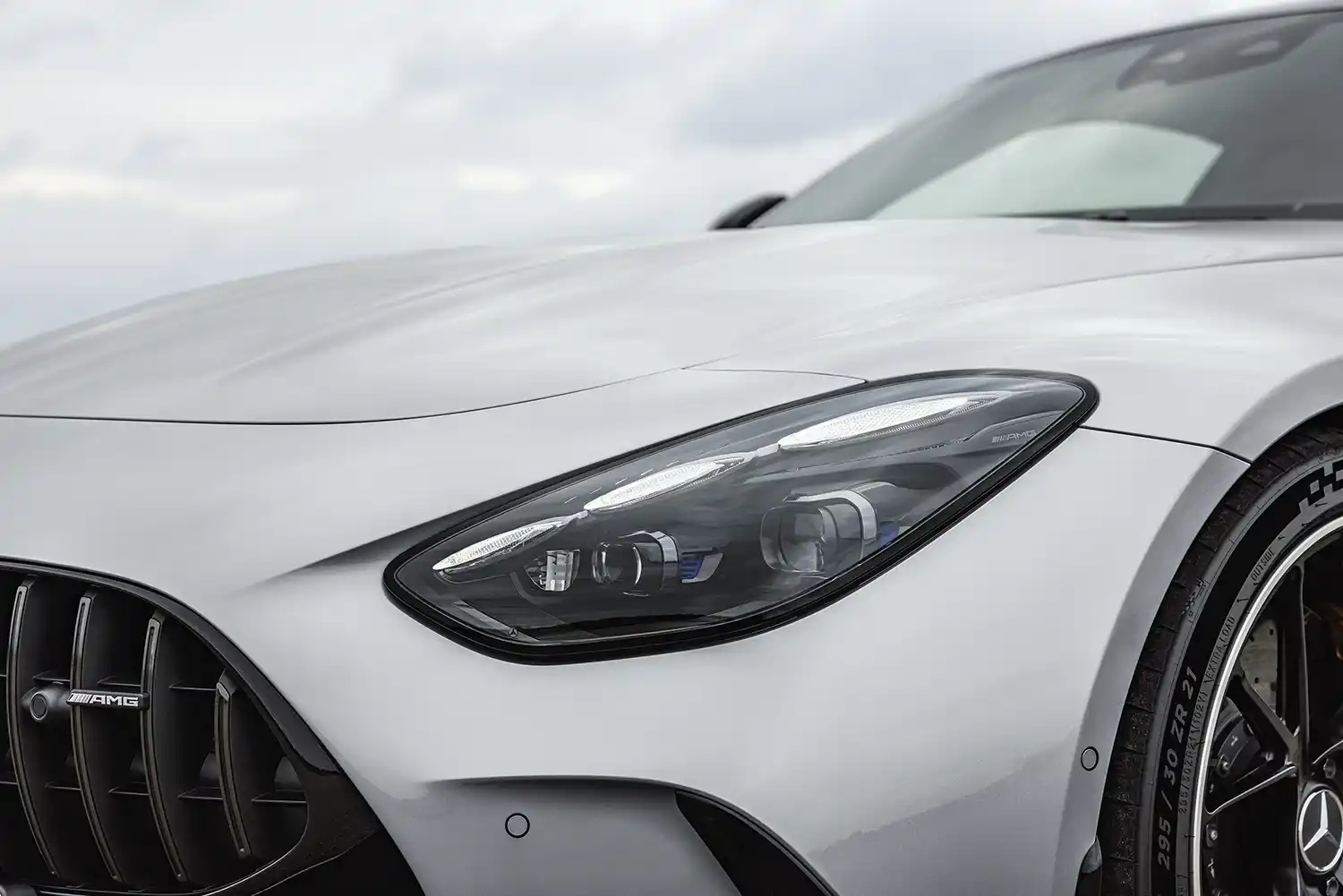 The deep and wide AMG-specific radiator grille creates a dominant presence. The distinctive headlights with standard DIGITAL LIGHT underline its unmistakable character. The daytime running lights with the characteristic three “light dots” light signet add further recognition value. The precise graphics in the darkened interior of the headlights with brushed surfaces underline the performance design. The lower air intake gives the front additional optical width. The sporty front is rounded off with the powerful power domes on the bonnet.