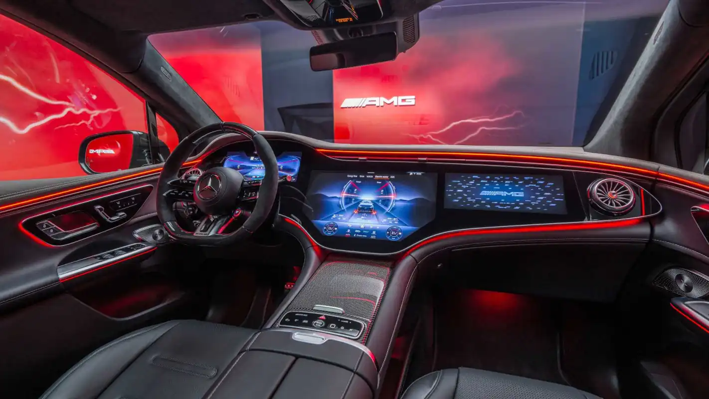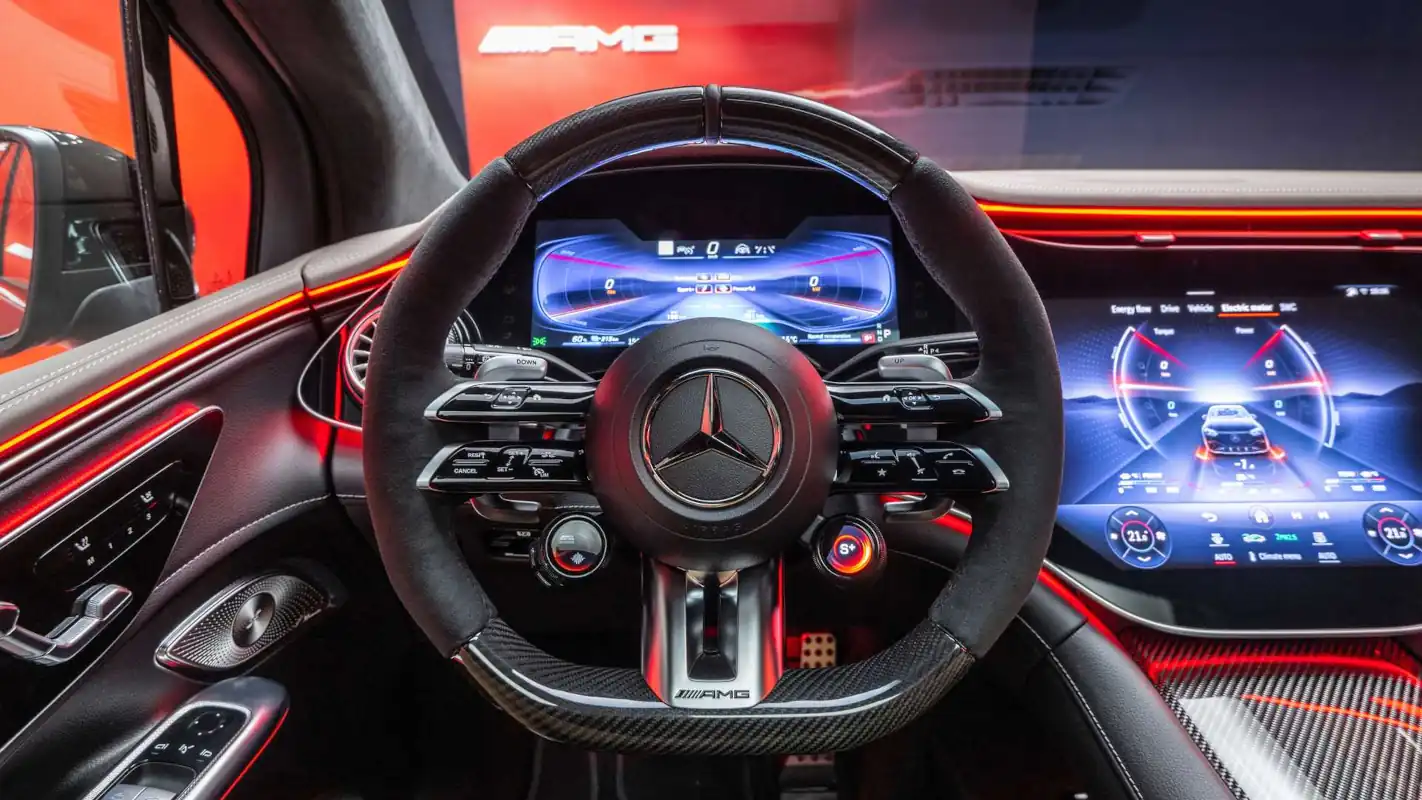 With AMG SOUND EXPERIENCE, the performance and sports car brand is giving a new voice to electric mobility – a soundtrack for outside and inside that emotionally enhances the dynamic driving experience. Like the drive programs, the acoustic composition has a wide band: in the standard basic version “Authentic”, the customer can regulate the sound and its intensity depending on the driving status and the selected drive program. The hallmark AMG driving sounds are generated with the help of additional hardware, including special speakers, a bass actuator and a sound generator. Another option for even more individuality: using the AMG steering wheel buttons or the central display, the driver can select the sound characteristics “Balanced”, “Sport” and “Powerful” in each drive program. During RACE START, the vehicle produces a unique sound to match the dynamic acceleration.