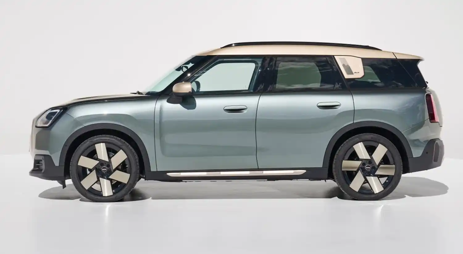 Viewed from the side, the new MINI Countryman has a minimalist appearance with a powerful presence. The circumferential Black Band