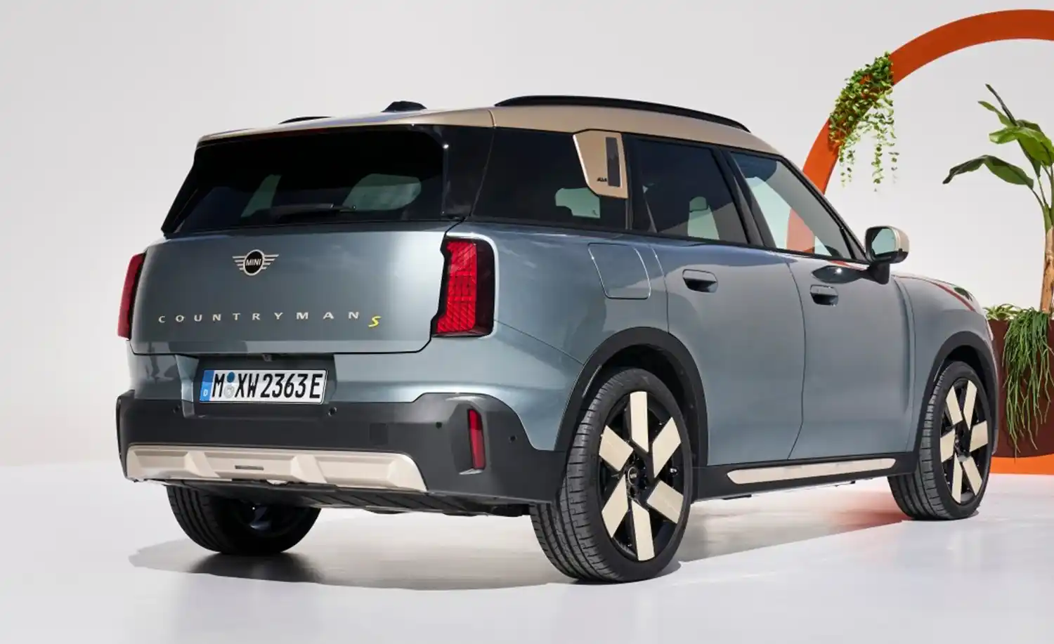 is narrower than on the predecessor. The distinctive design of the C-pillar supports the roofline at the rear of the vehicle while at the same time making it appear shorter. This makes the entire vehicle body look more upright, emphasising the character of the new MINI Countryman. Rims of up to 20 inches in various designs add to the robust appearance. The focus is much more on the body color generating an elegant appearance.