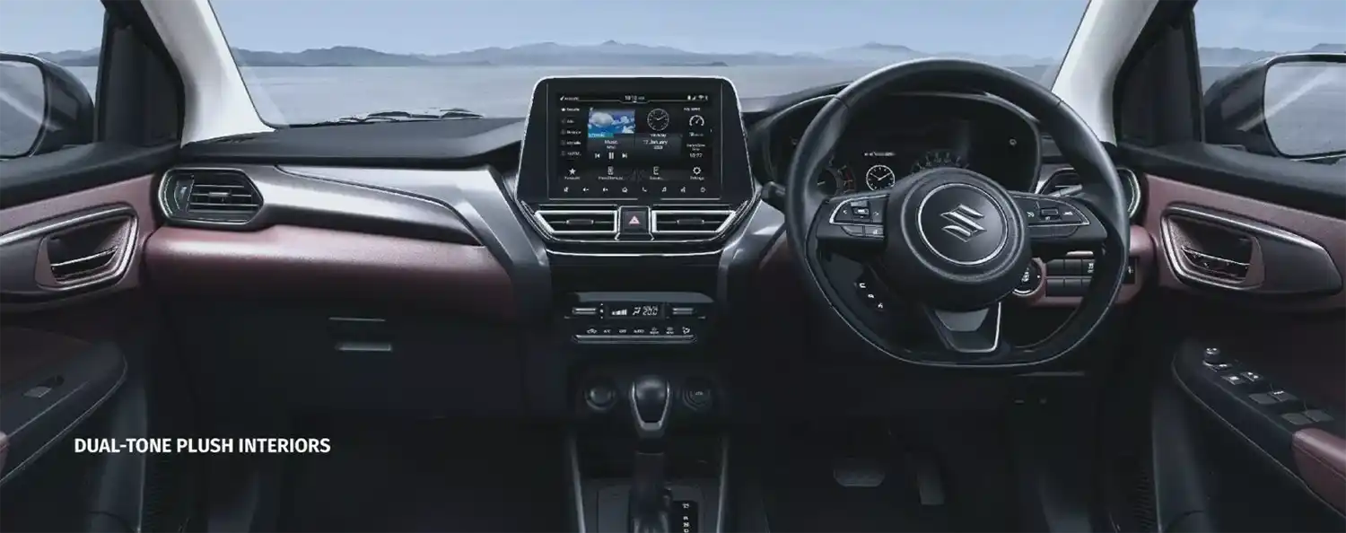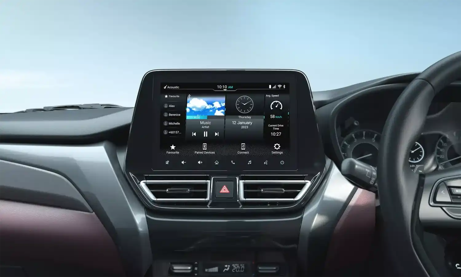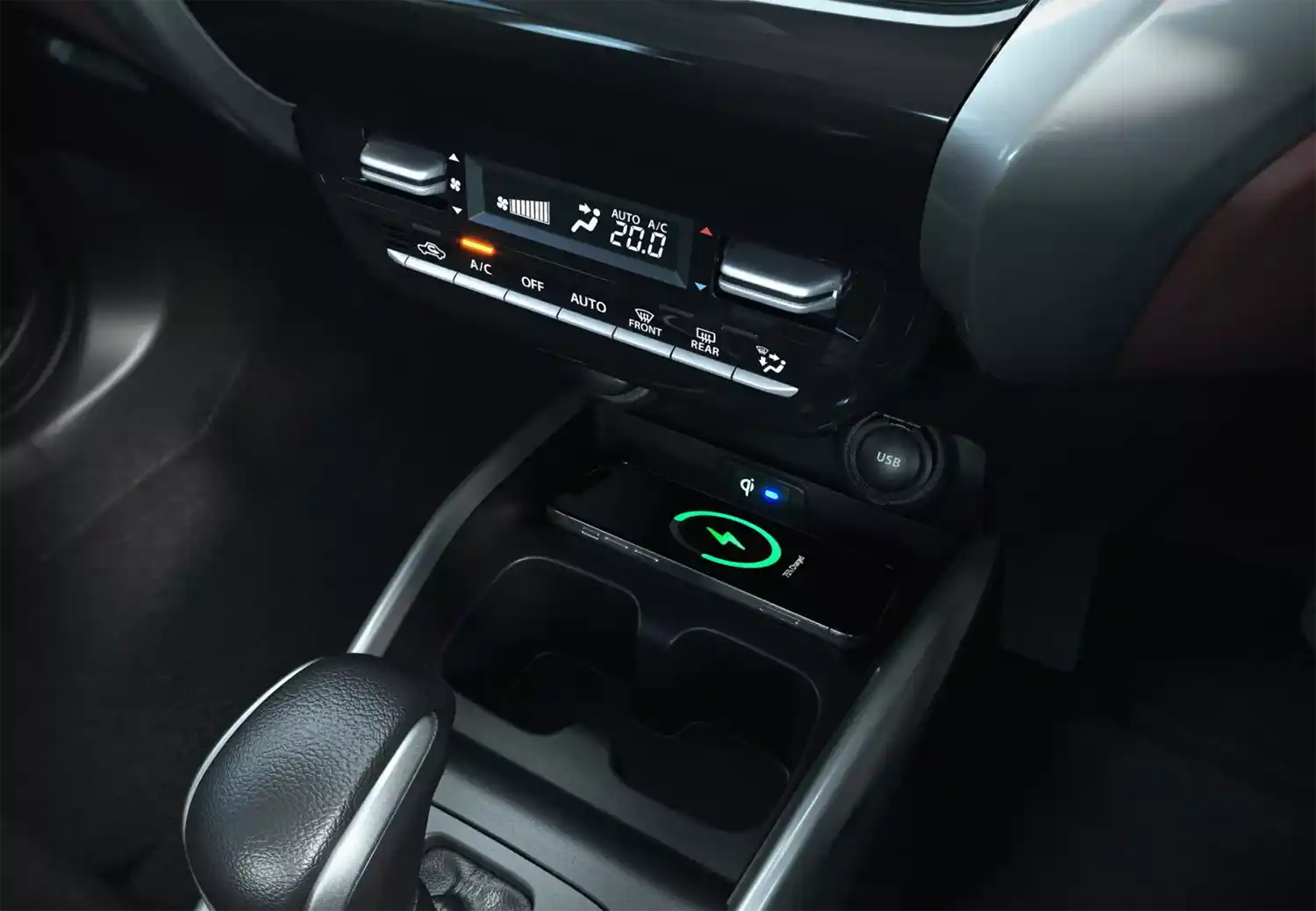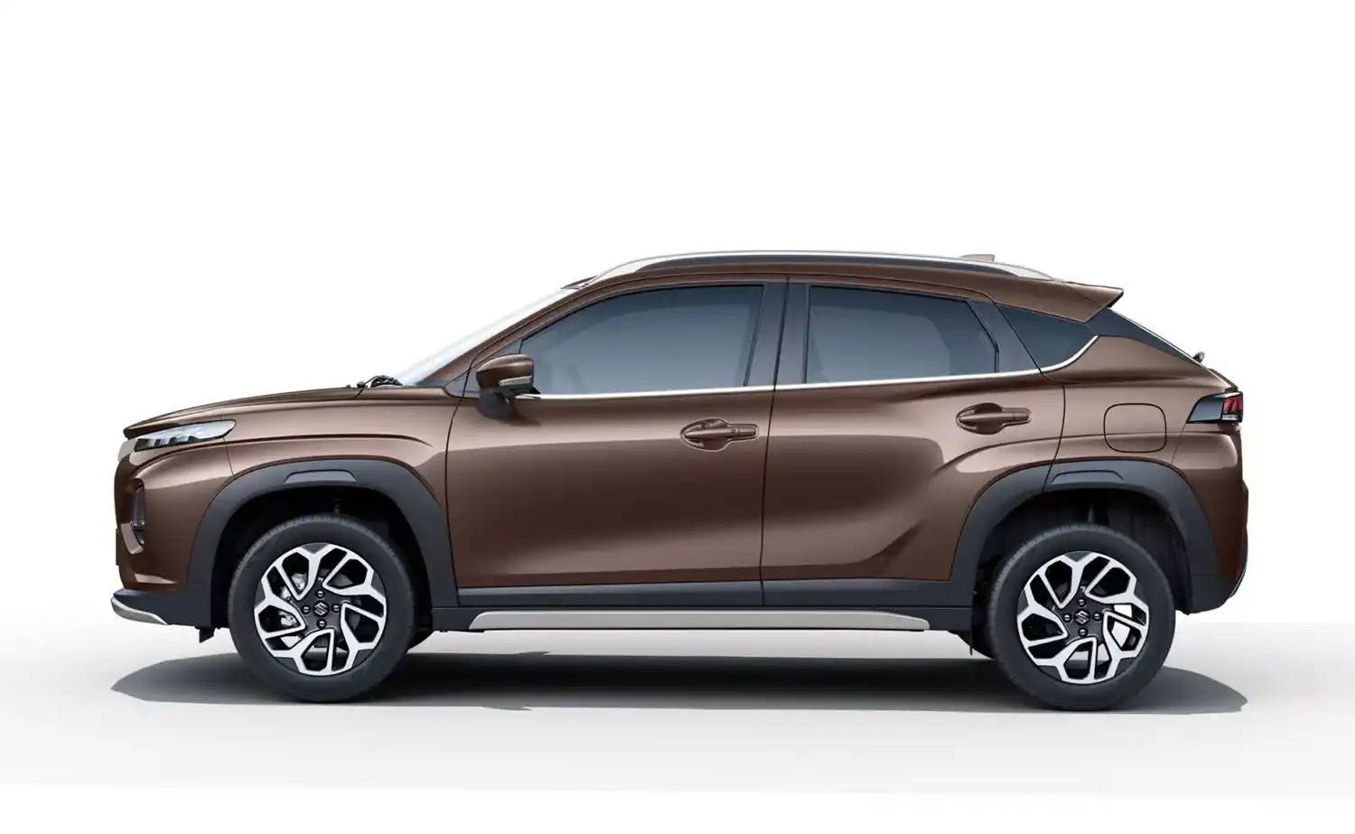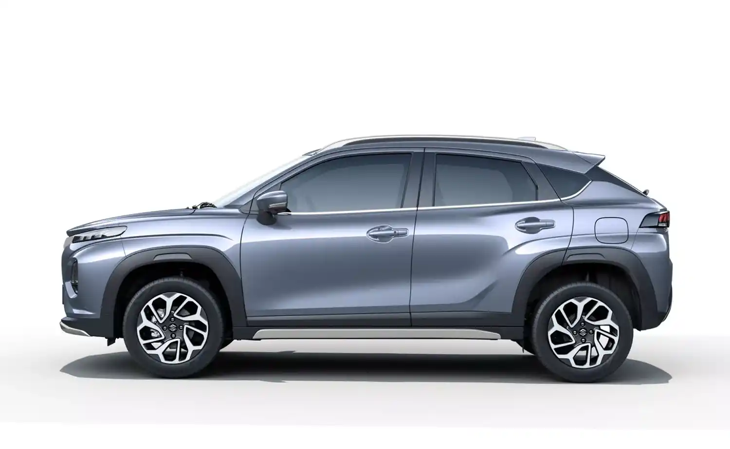 The all-new Fronx is a new-genre SUV with a coupe style that’s strong and fluid and an easy-to-drive compact body. The bold and thick front grille and the front and rear styling that emphasizes expansion towards the sides express powerfulness and strong presence of an SUV. The dynamic coupe style that slopes towards the rear emphasizes a flowing and stretchy proportion. In addition to the high-quality interior which makes efficient use of space, it has adopted advanced equipment such as 360 view camera, headup display, wireless charger and rear-seat air conditioning vents, for convenience and comfort.