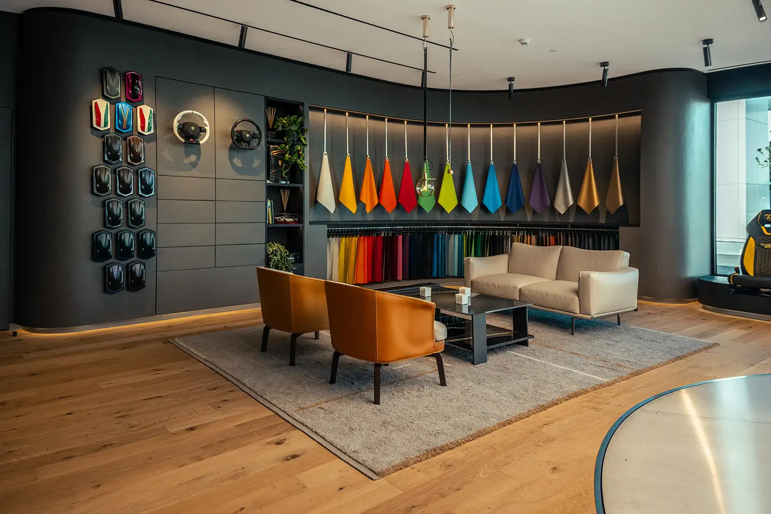 The Studio, opened in 2016, has doubled the space dedicated to the program, going from 90 m2 to the current 180 m2, demonstrating how much of a priority the clients’ personalization experience is for the company. The recent renovations represent a true evolution for the Studio, creating an even more high-end environment where customers can experience the essence of Lamborghini in an exclusive but at the same time intimate context, characterized by luxury. Not only has the space dedicated to the Ad Personam experience increased, but the quality of the experience offered too, illustrated by the growing number of reservations from all over the world.