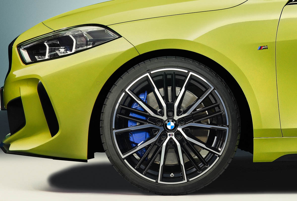 Specially tuned M Sport steering and exceptionally powerful M Sport brakes can also be found on the standard equipment list for the BMW M135i xDrive. The compact sports car leaves the factory on 18-inch M light-alloy wheels as standard, with the option of 19-inch light-alloy items available in a variety of designs.
