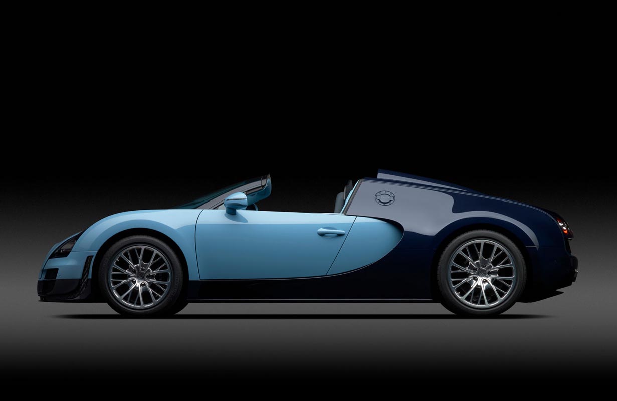 In 2005, Bugatti presented its first hyper sports car, the Veyron 16.4, and then in August 2008, Bugatti launched the first roadster version of its modern era, the Veyron 16.4 Grand Sport. A special monocoque construction ensured there were no compromises compared with the hardtop. The Grand Sport reaches 360 km/h without its roof, and with the special polycarbonate roof element in place it can hit more than 400 km/h. With the Veyron 16.4 Grand Sport, Bugatti proved that it is possible to build a hyper sports car as a roadster that is extremely dynamic, fast, comfortable, and safe to drive. In 2013, an even more powerful and focused variant – the Veyron 16.4 Grand Sport Vitesse – hit a world speed record of 408.84 km/h, thereby becoming the fastest production roadster in the world. The World Record Car (WRC) edition of the Vitesse was limited to eight vehicles. Between 2005 and 2015, 300 Veyron 16.4 coupés and just 150 Veyron 16.4 Grand Sport and Grand Sport Vitesse were produced in Molsheim, France, including some truly special models and editions.
