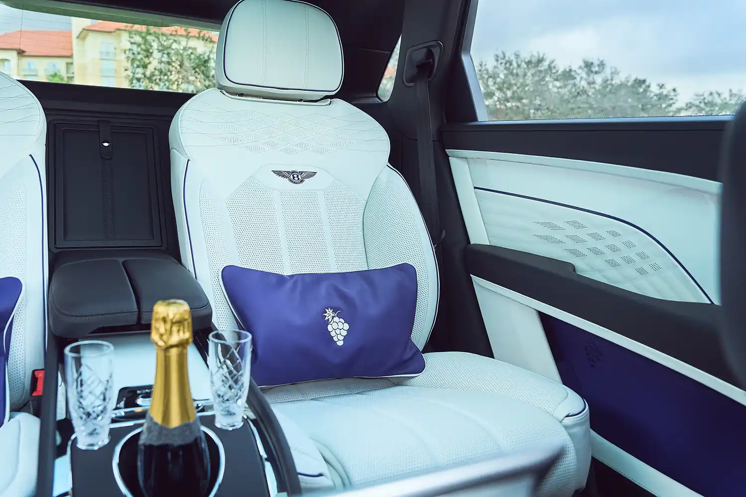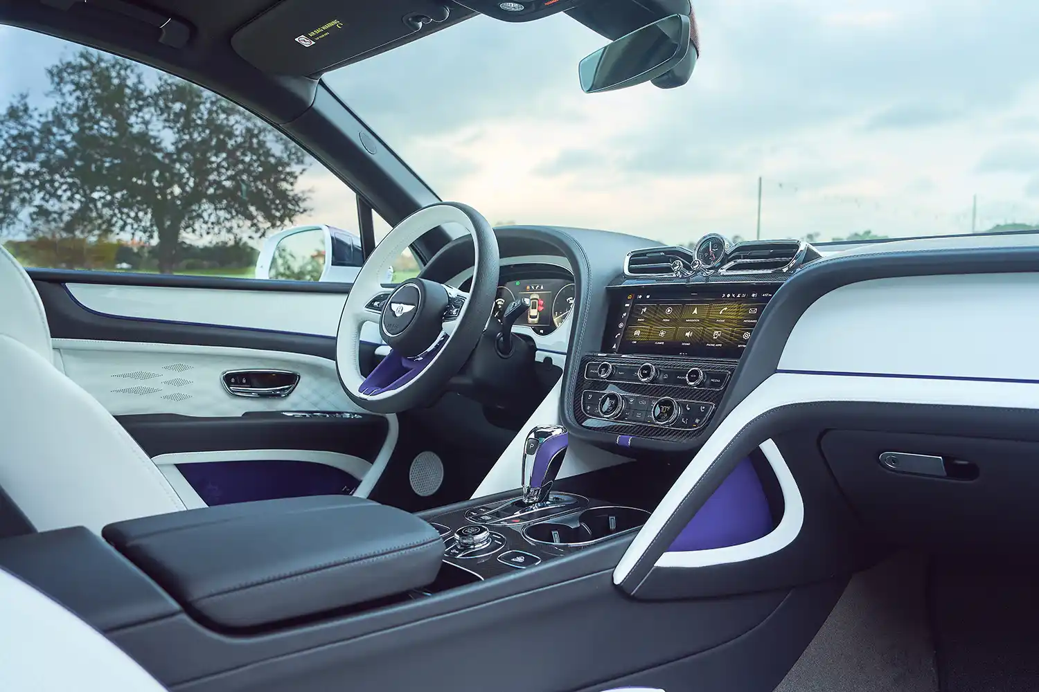 Personalized Naples Winter Wine Festival tread plates add to the bespoke nature of the Bentayga. The cabin experience is enhanced with world class leading audio from Naim accented by white speaker grilles.