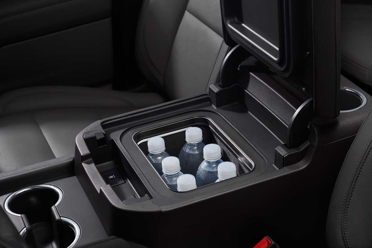 Don’t forget the road trip snacks: No hardened adventurer would leave home without a steady snack supply and now, with the Chevrolet Tahoe, your options are limitless! Equipped with a best-in-class center console fridge1 that outstrips all other offers on the market, your every drive will be snacktastic. Powered by its own compressor, the fridge can reach temperatures of -5o, meaning you can store ice cream even while hitting the dunes. With your comfort and convenience in mind, the fridge immediately begins to chill once the vehicle is remote started so turn your Tahoe on 20 minutes before departure and enjoy a cool refreshment. Big enough to store six 0.5L bottles of water with space left over, you will remain refreshed and hydrated no matter where the road takes you.
