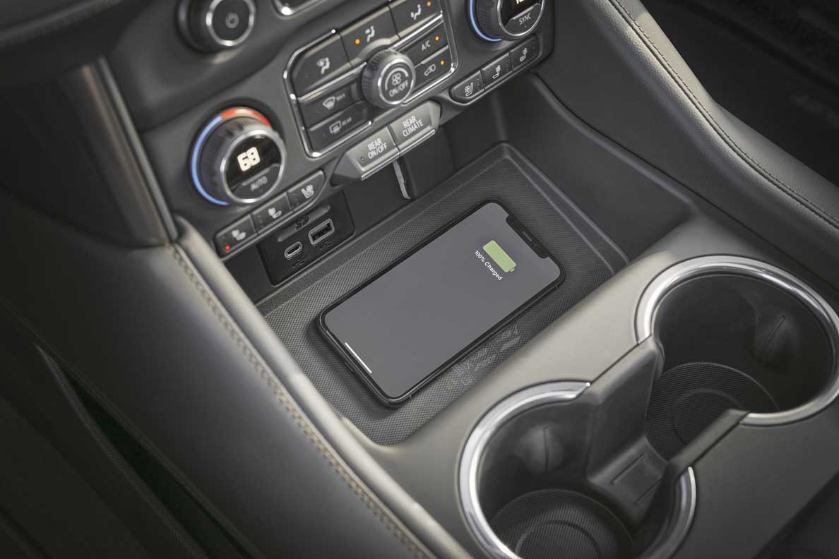 Connectivity on-the-go: the Chevrolet Tahoe stops all road-trip-fights-for-connectivity before they even start! With four USB ports in the front, two in the second row and two in the third row, every passenger can charge up their device of choice, so they are full of juice before arriving at your destination.
