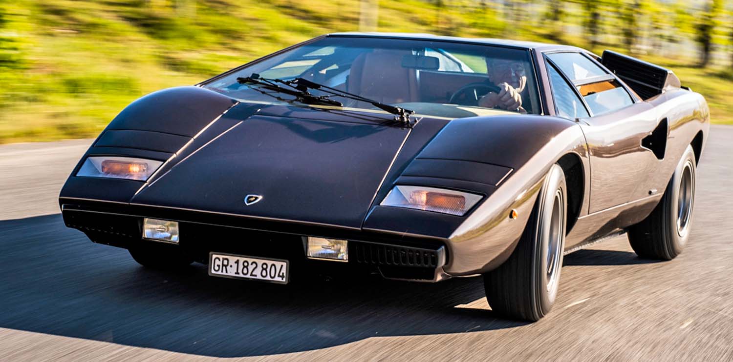 In the summer of 1970, Ferruccio Lamborghini pushed his men to get a revolutionary car that could succeed in the not so easy undertaking of replacing an icon like the Miura. The new car had to be technically advanced and faster, able to become the sports car symbolizing the 1970s. The 12-cylinder engine remained but its displacement was increased from 4 to 5 liters, and its position on the car changed: from rear transversal to rear longitudinal. To be able to achieve this while avoiding the limitations of a rear overhang transmission, the company’s technical manager, Paolo Stanzani, invented a new technical solution, with the transmission placed in front of the engine, practically abutting the seats, and the propeller shaft passing inside the engine block. From the stylistic viewpoint, Marcello Gandini, head of style at Carrozzeria Bertone, decided to abandon the rounded shapes that had distinguished the 1960s and he designed a very low and wide car featuring sharp edges. It was absolutely extraordinary in its shape.
