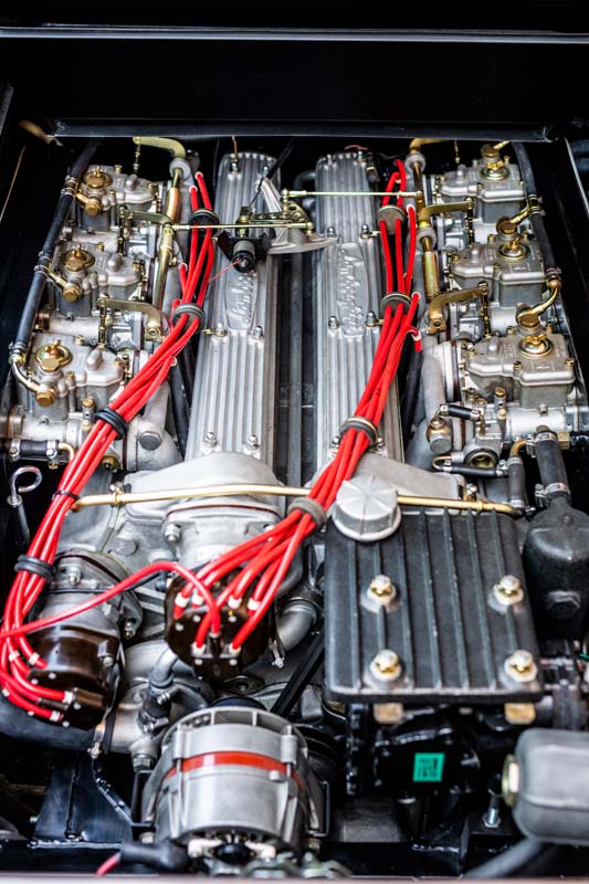 The Quattrovalvole adopted a new evolution of the 12-cylinder engine, with displacement increased to 5.2 liters and equipped with a head having four valves per cylinder. The new technical solution demanded that new carburetors be used, six Weber DCNF, and no longer in the horizontal position but mounted vertically. The version for the US market, on the other hand, had Bosch KE-Jetronic electronic injection combined with catalytic converter and recovery of the gas fumes. The boosted power was amazing: 455 hp at 7000 rpm. The front track was increased by 4.4 millimeters and aesthetic alterations were minimum: a new engine hood featuring a larger protuberance necessary to contain the new vertical carburetors.