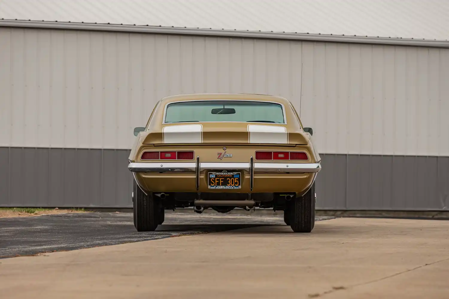 Distinctive Exterior and Aggressive Stance: The exterior of this 1969 Chevrolet Camaro Z28 is finished in the classic and period-correct Olympic Gold, a hue that perfectly complements the car’s bold lines and muscular contours. The Z28 model is instantly recognizable by its distinctive styling cues, which include a special ducted hood, designed not only for aesthetics but also to enhance engine cooling and performance. As a coupe, the car maintains its iconic fastback profile, exuding an aggressive stance that hints at its underlying power. The combination of its vibrant color and purposeful design elements ensures that this Camaro stands out, embodying the quintessential look of late-1960s American muscle.