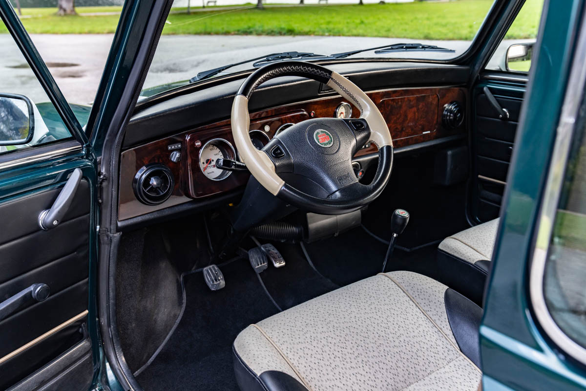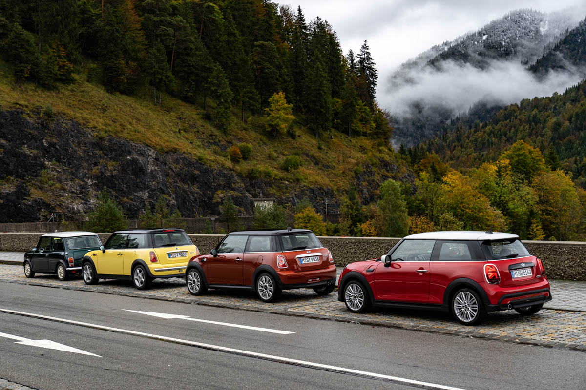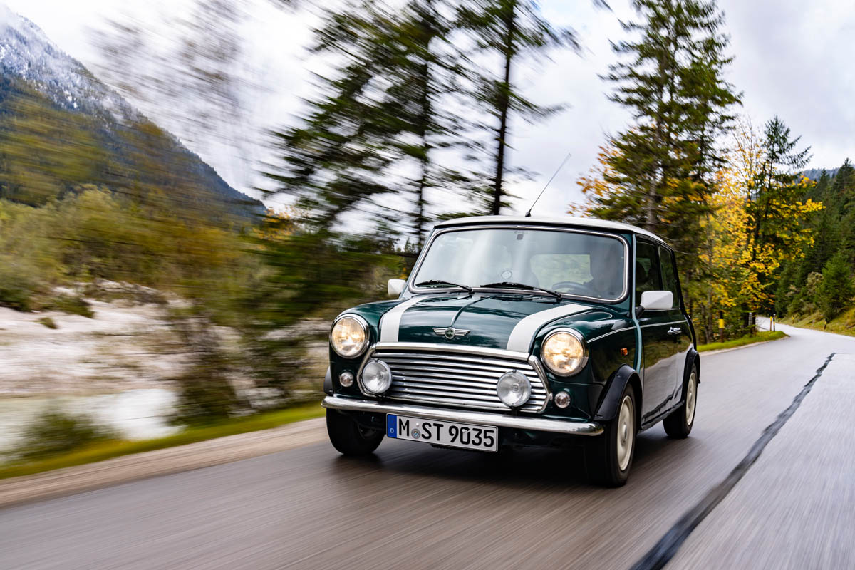 The classic Mini started with an engine output of 34 hp, but it was light and exhibited strikingly agile cornering performance thanks to front-wheel drive, a wide track and a torsionally rigid body. While Issigonis primarily had a low-priced and economical vehicle for everyone in mind, John Cooper immediately recognised the sporting potential of the classic Mini. The two ingenious engineers had already met during joint racing activities, later also cultivated business relations and developed an intimate friendship over time. Nevertheless, it took a lot of persuasion to raise the sporting temperament of the classic Mini. With the blessing of the BMC management, John Cooper therefore initially had a small series of 1,000 vehicles built, whose modified engine, expanded in displacement to just under 1.0 litres, generated 55 hp, which was enough for a top speed of 135 km/h. Cooper also provided a closer-ratio gearbox, a better-guided gear lever, disc brakes on the front wheels and wider tyres. In addition, the roof was colour-contrasted and the interior was two-tone. Thus, the first Mini Cooper came onto the market in September 1961.