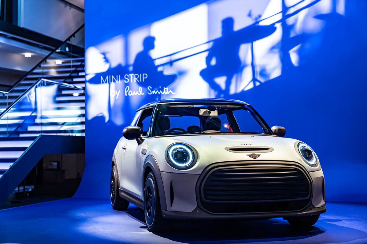 MINI STRIP was recently presented as an unconventional example so typical of MINI, demonstrating how creative thinking can pave the way towards more sustainability. This custom special was created in a collaboration between MINI and the British fashion designer Paul Smith. A tailor-made one of one was designed on the basis of a MINI Cooper SE incorporating the themes “Simplicity, Transparency, Sustainability”. As the name of the car suggests, this vehicle was reduced to its structural essence. Ultimately, only those elements regarded by Paul Smith as absolutely essential were used.