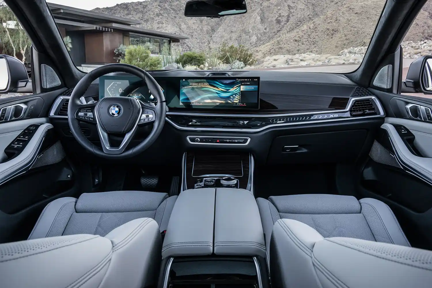 The BMW Curved Display in the new BMW X5 and the new BMW X6 is formed by a 12.3-inch information display and a control display with a screen diagonal of 14.9 inches. The screens are housed together behind a curved glass surface so they merge into a single, fully digital, highresolution unit. With its ergonomic driver-centric positioning, the BMW Curved Display makes the already intuitive touch control even more user-friendly. At the same time, the front passenger is also in an ideal position to view the displays and operate the system by either touch or voice control.