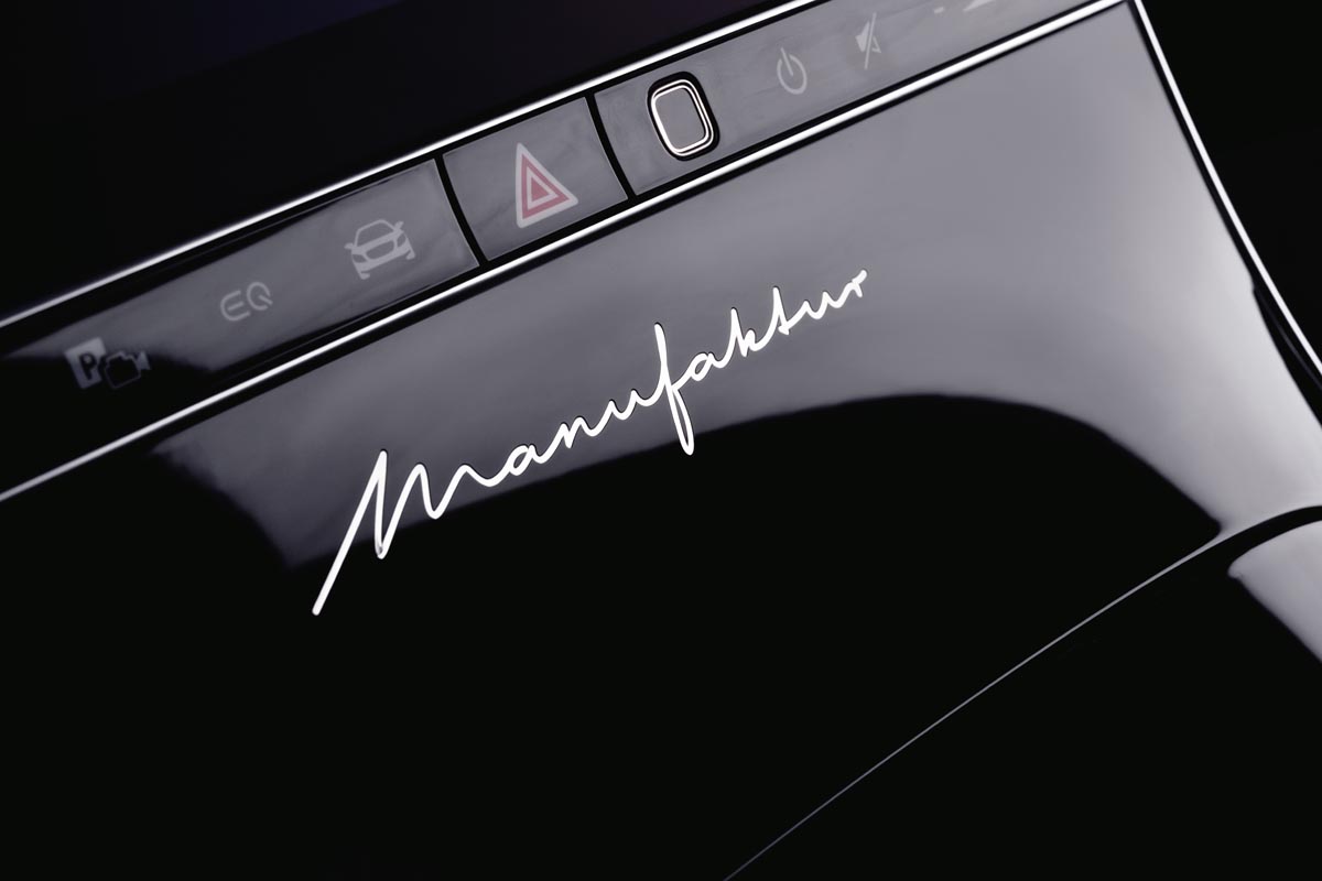 Mercedes-Benz customers can expect an ambience characterised by an equally aesthetic and extraordinary colour concept, the finest materials, sensual comfort and exclusive trim elements in piano lacquer or wood. The excellence of the craftsmanship is visible and tangible in the embroidery, the leatherwork and the carefully applied trim elements. The attention to detail is particularly highlighted in the Mercedes-Benz S-Class long-wheelbase and the Mercedes-Maybach S-Class, by the MANUFAKTUR lettering in chrome look on the centre console and as discreet embroidery on the parcel shelf, as it is a result of a high-quality manufacturing process with selected, first-class materials.