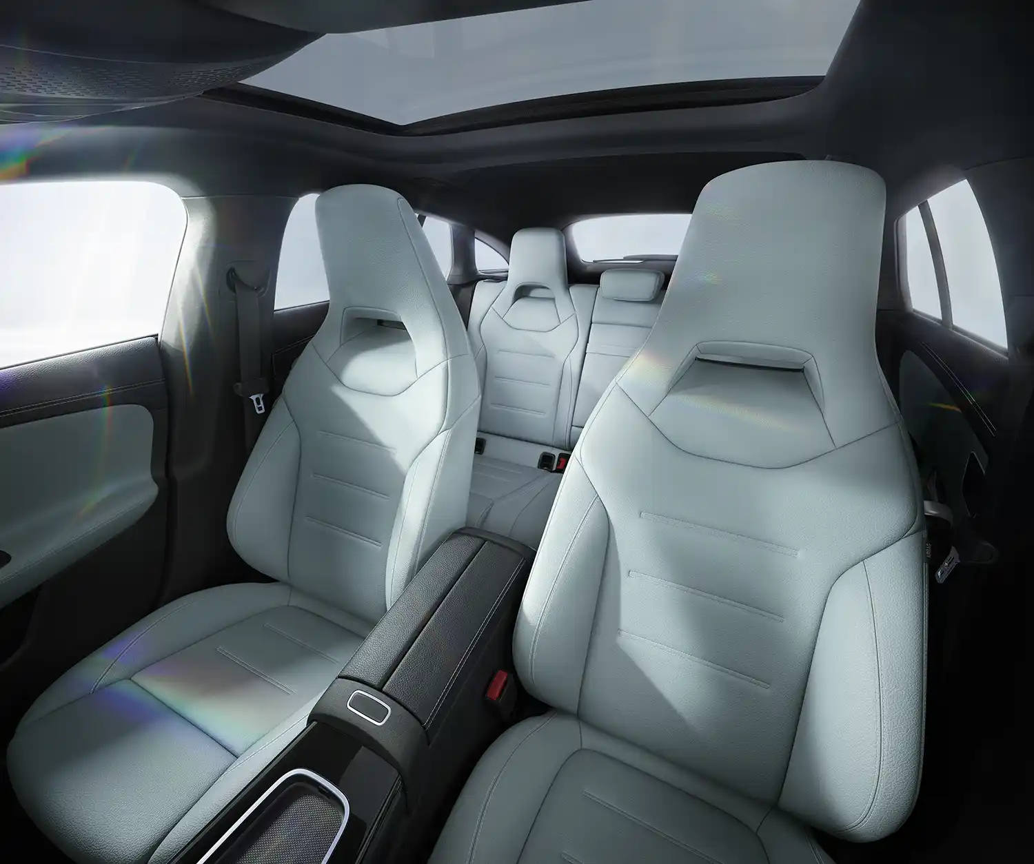 The comfort seats are also part of the new high-quality standard in the CLA Coupé and CLA Shooting Brake. They are fitted as standard with a combination of ARTICO man-made leather and three-dimensionally embossed fabric in black. They are also optionally available in trendy sage grey. The Progressive equipment line offers three interior colours: black, macchiato beige and sage grey. In the AMG Line, the standard seat upholstery in ARTICO man-made leather/microfibre MICROCUT is now also available in bahia brown. A total of five upholstery colours are available in the AMG Line: black, bahia brown, sage grey, titanium grey pearl/black and, for the first time, red pepper/black.