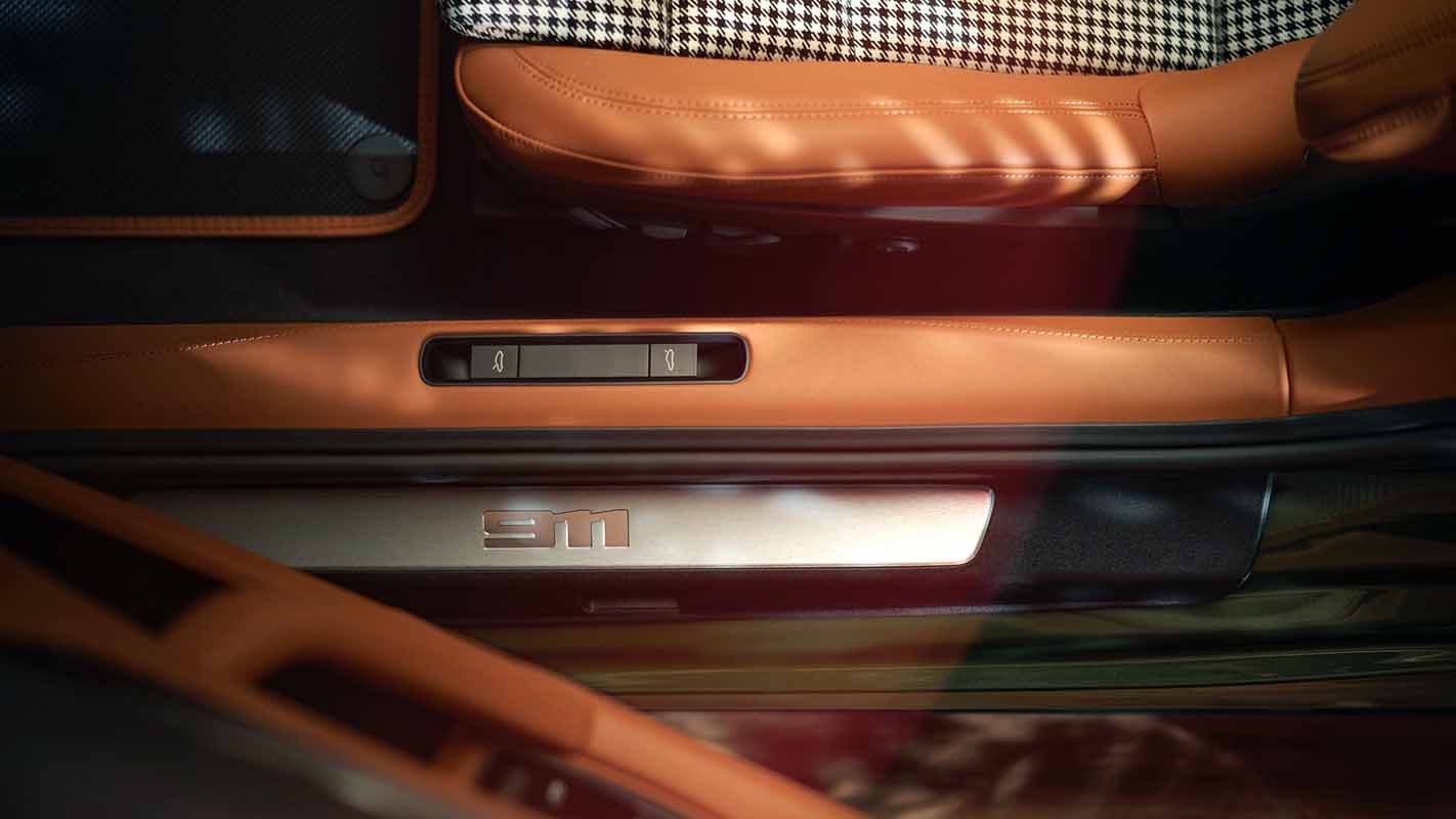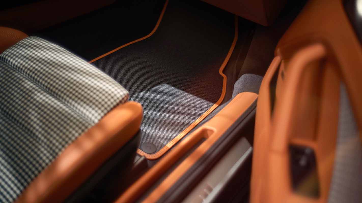 In the interior, the iconic Pepita pattern can be found on the door panels and seat centres, while two-tone, semi-aniline leather upholstery in Black/Classic Cognac provides an elegant contrast with the exterior colour.