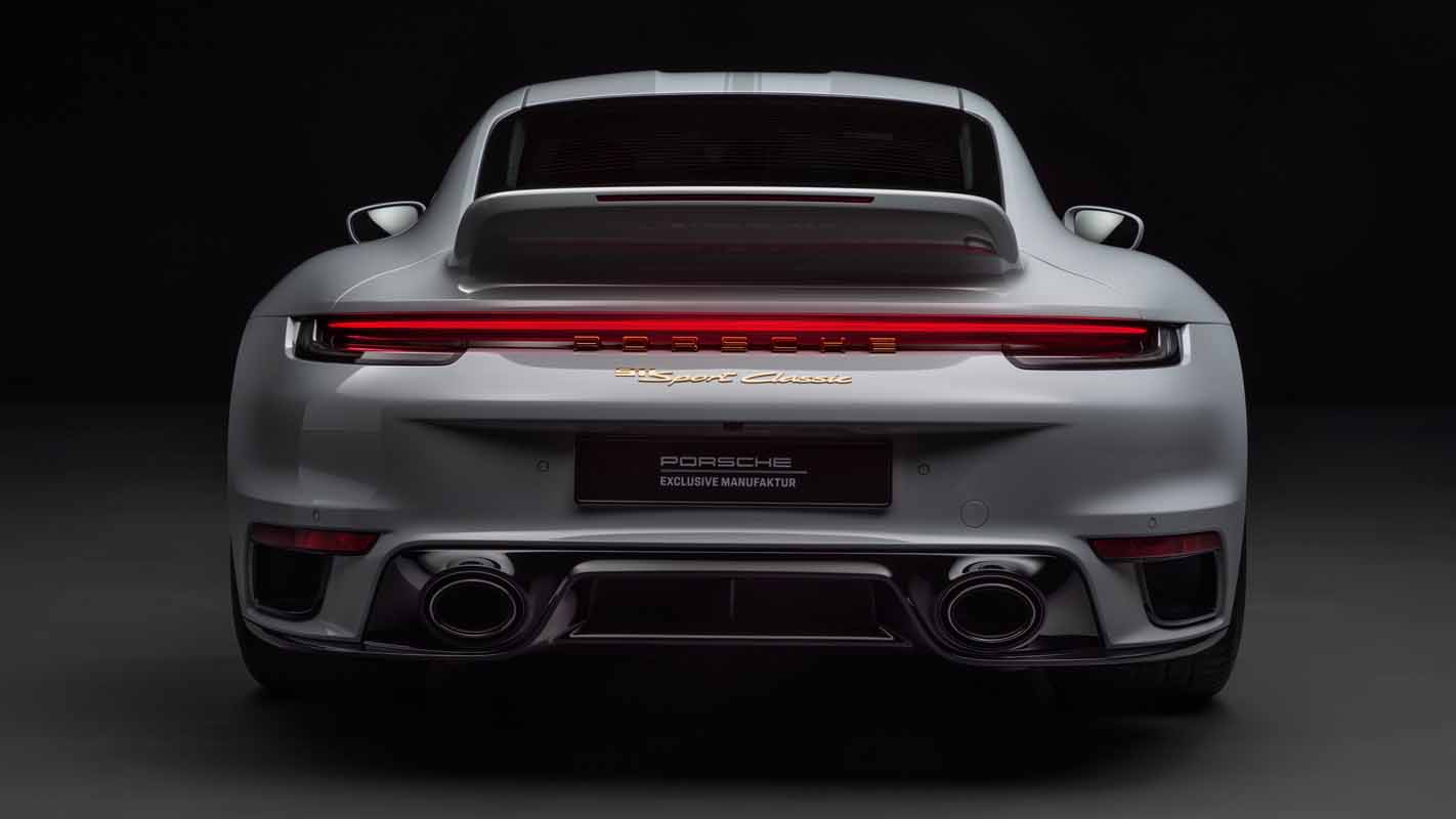 The powertrain concept is equally unique: the 3.7-litre, twin-turbo flat-six engine transmits its 405 kW (550 PS) to the road via the rear wheels only. In combination with the seven-speed manual gearbox, the new 911 Sport Classic is the most powerful manual 911 available today.