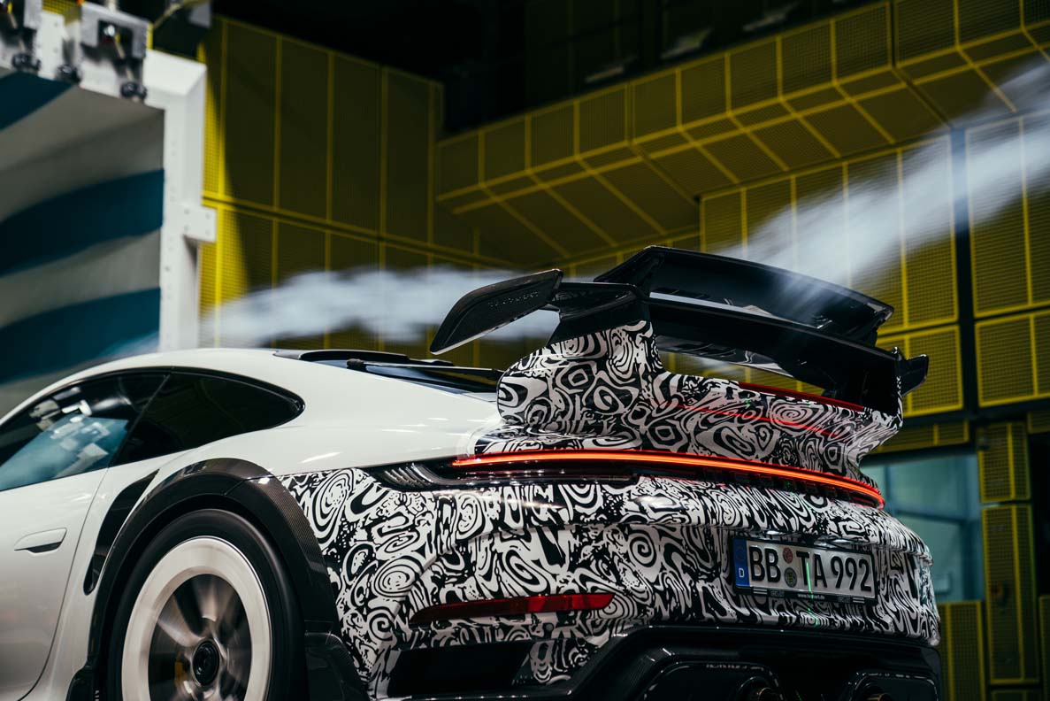 Increased downforce on the rear axle, reduced lift on the front axle: the unique lightweight aero package made of carbon fiber, with an air flow optimized in the wind tunnel, ensures higher cornering speeds and a well-balanced handling. Overall, the aerokit generates four times more downforce on the rear axle and 45% less lift on the front axle at a speed of 140 km/h compared to the series model measured by TECHART. In addition, the air throughput has been significantly increased all round thanks to larger air inlets. The active aerodynamics of the base model with variable front and rear spoiler are retained even with the TECHART GTstreet R aerodynamic package.