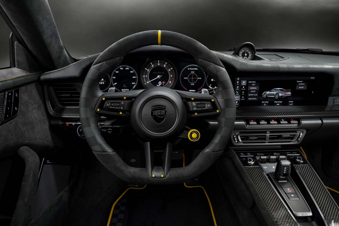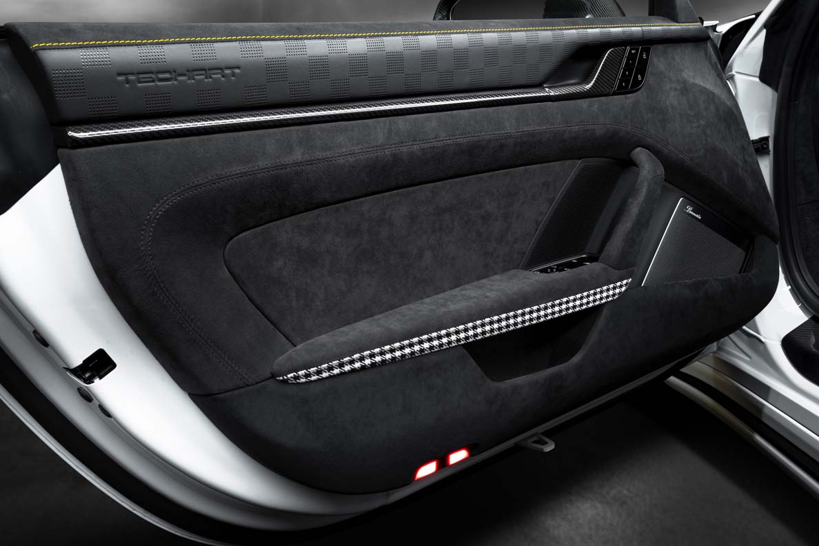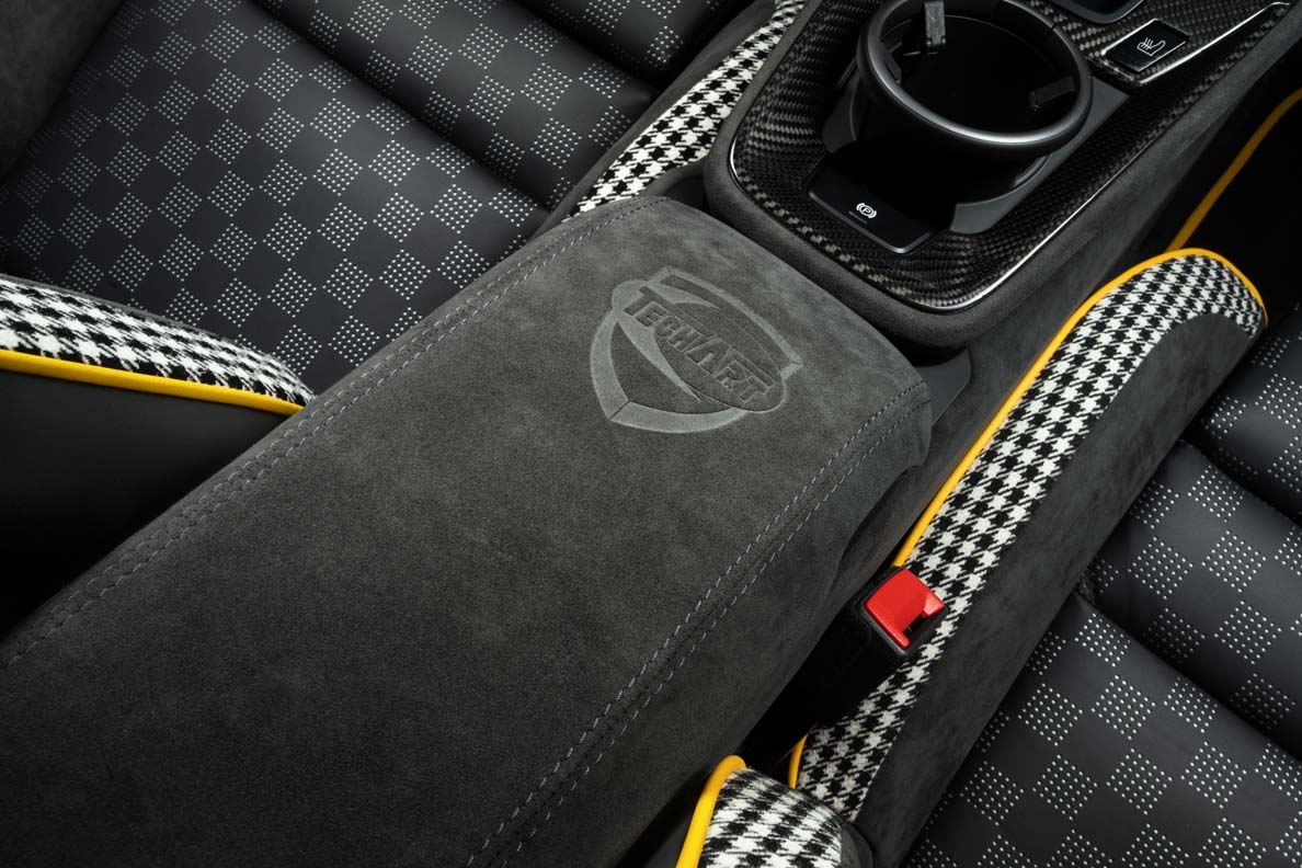The interior is refined with carbon and a mix of Alcantara®, leather and heritage fabrics, inspired by traditional motorsport materials, and underlines the high standards of individuality and sportiness. The TECHART interior manufactory leaves no customer wish to be desired.