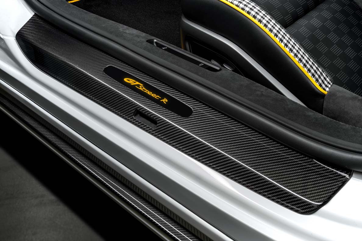 Uncompromising: the new carbon fiber front lid shows the unmistakable racing DNA. The two sharply modeled tendons describe the typical GTstreet look. Air outlets in the front area of the carbon fiber hood also underline the functional focus of the GTstreet R aerodynamic package, as the air is drawn from the central duct of the front apron.