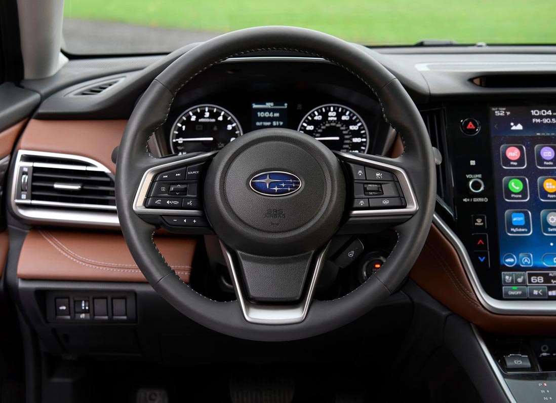 All 2023 Legacy models are paired with Subaru’s Lineartronic CVT (continuously variable transmission) featuring an 8-speed manual mode function with steering wheel paddle shifters. The 2.4-liter turbo delivers an estimated 24/32 mpg city/highway. The 2.5-liter achieves up to an estimated 35 mpg and a range of more than 600 miles on a single tank.