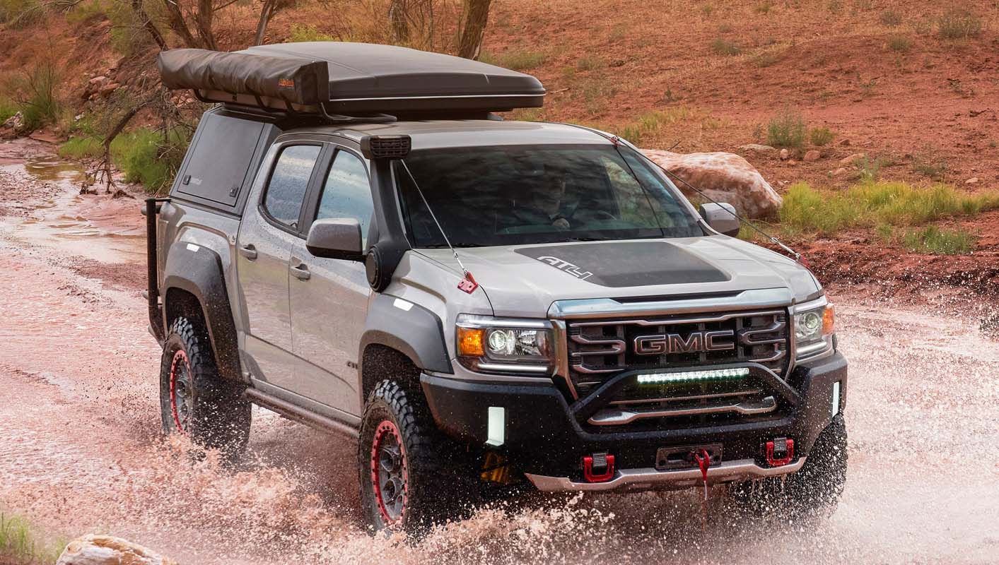 The current generation Canyon debuted in 2014. Since then, GMC has upgraded the mid-size truck over the years to include the AT4 trim and an off-road performance package that adds a 1-inch suspension leveling kit, off-road rocker panel protection, and front and mid skid plates. Most recently, GMC revealed the Canyon AT4 concept last year, which included a number of off-roading and overlanding accessories.
