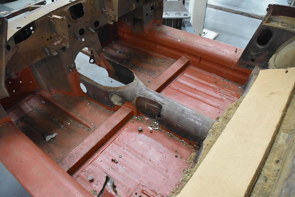 Now prepped for the blasting process to remove any remnants of rust that may compromise the structural rigidity of the car, the true condition of this injured icon will soon be revealed.