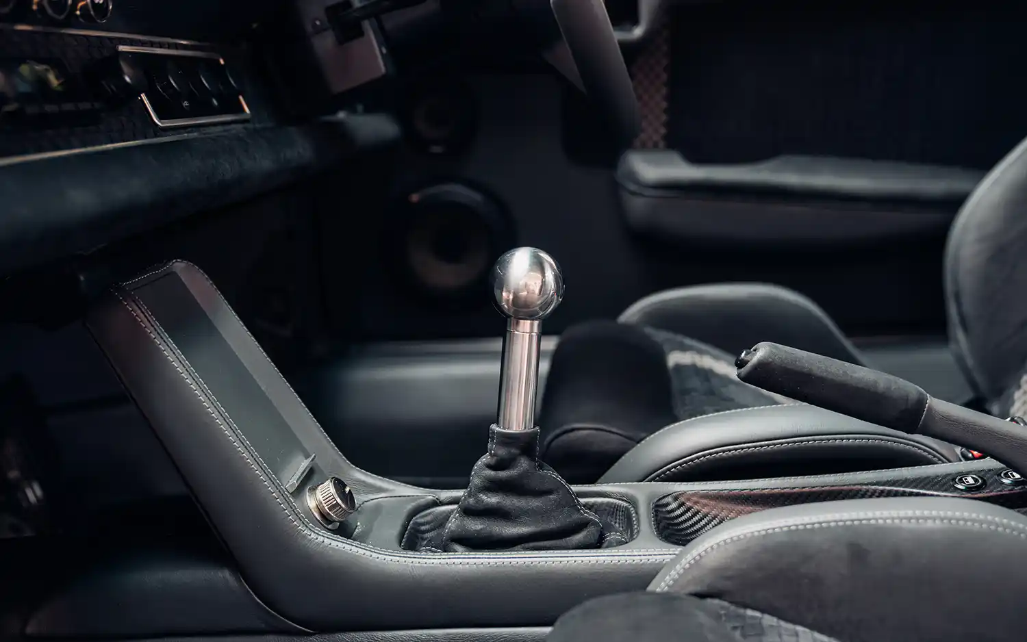 Taking a step inside, you are greeted by THEON’s entirely modernised, next generation interior. The handcrafted quality and endless interior details are immediately apparent. Specified with fast road touring in mind, GBR001 is fitted with supportive woven leather Recaro seats, backed with body-coloured trim and harness holes. ‘Phantom’ leather is found throughout the interior, including the sills and transmission tunnel – a first for a Theon Design commission.