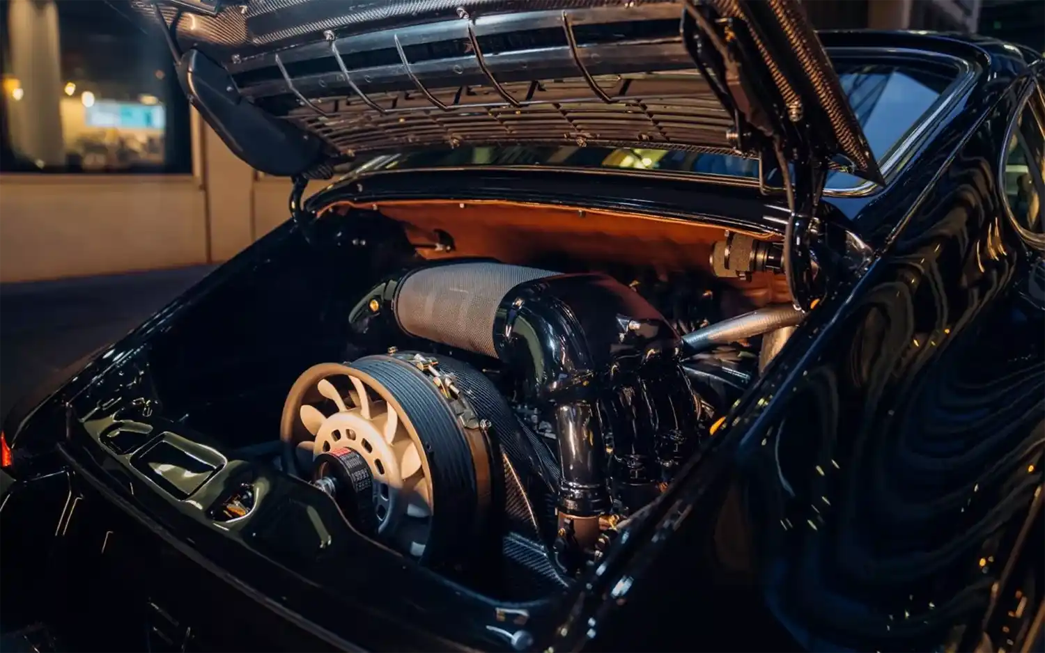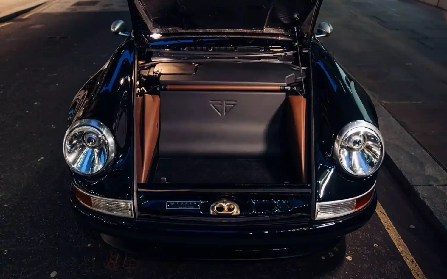 Inside Theon Design’s total commitment to bespoke, handcrafted quality is also immediately apparent. ITA001 is specified with fast road touring in mind, with supportive Recaro ‘touring’ seats trimmed in sumptuous, soft tobacco Bridle leather. The exterior’s satin carbon is mirrored inside, for a modern, motorsport edge. ITA001 is also fitted with custom rear touring seats – drawing inspiration from the Porsche 928 rear buckets. Again, Theon Design has creatively enhanced, whilst remaining resolutely ‘Porsche’ in its approach.