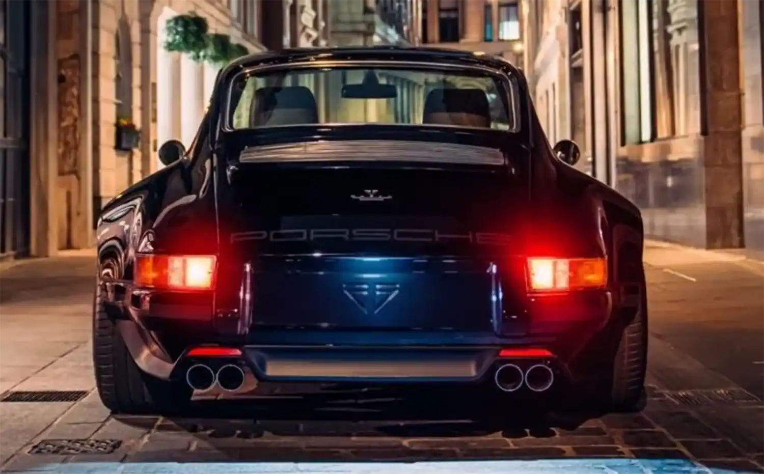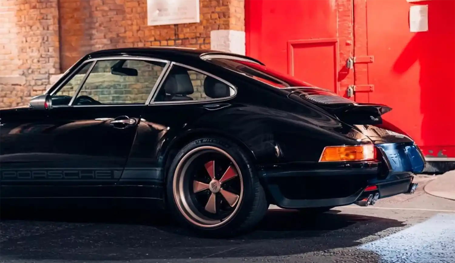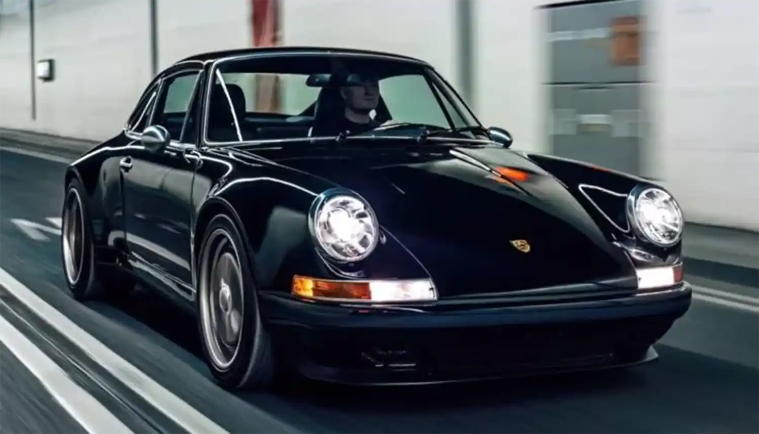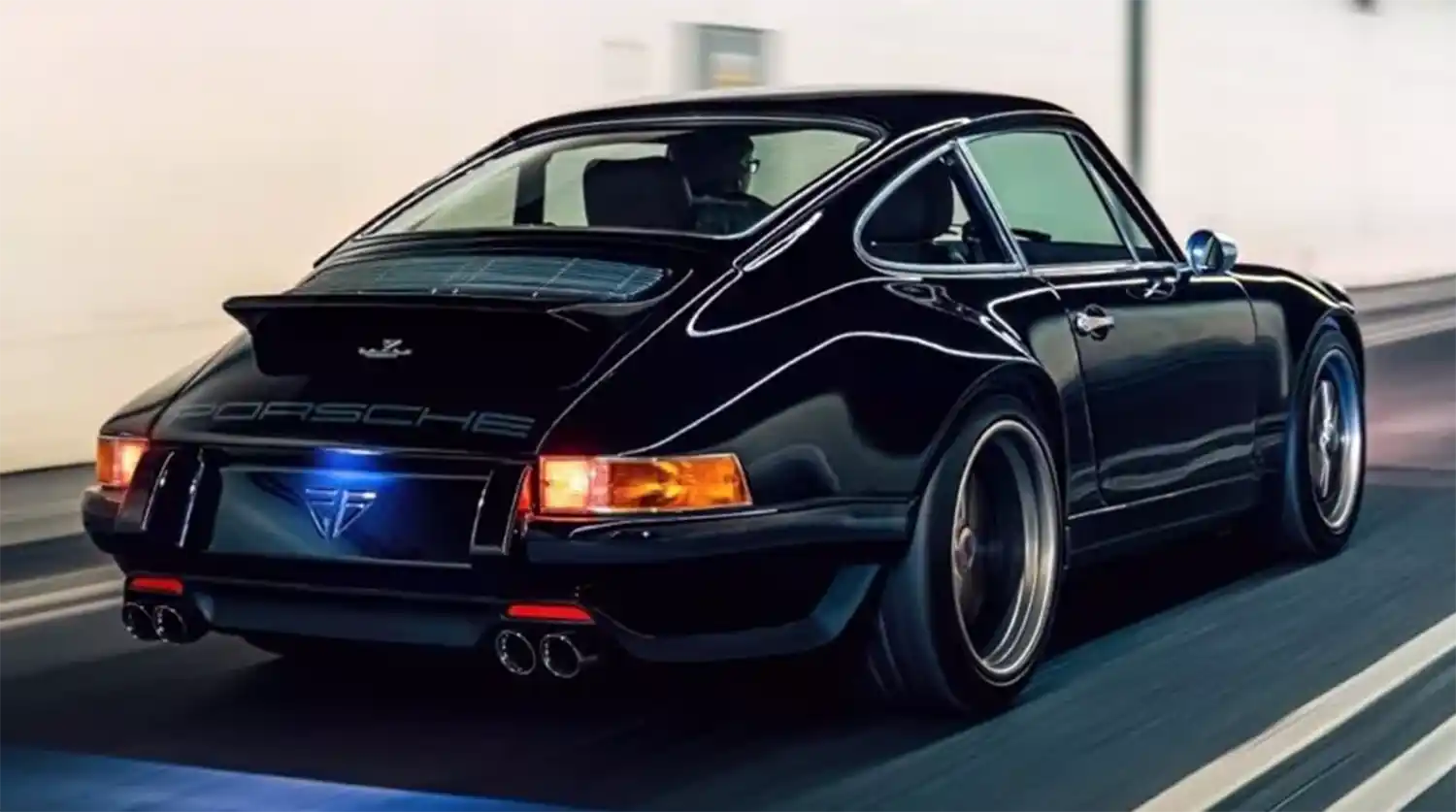 ITA001’s all-carbon body is finished in the classic Porsche colour of Schwartz Black, a ‘70s hue, offset by understated grey ‘Ghost’ stripes, with a matching PORSCHE script running along the sills.