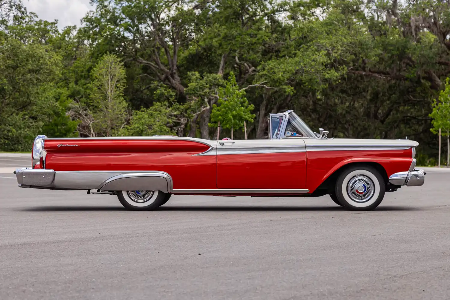 The ride is stately but engaging. It floats more than it attacks, but that’s exactly the kind of experience the 1959 Ford Fairlane Skyliner promises. Whether in motion or sitting with the roof tucked away, it pulls in attention from every direction.