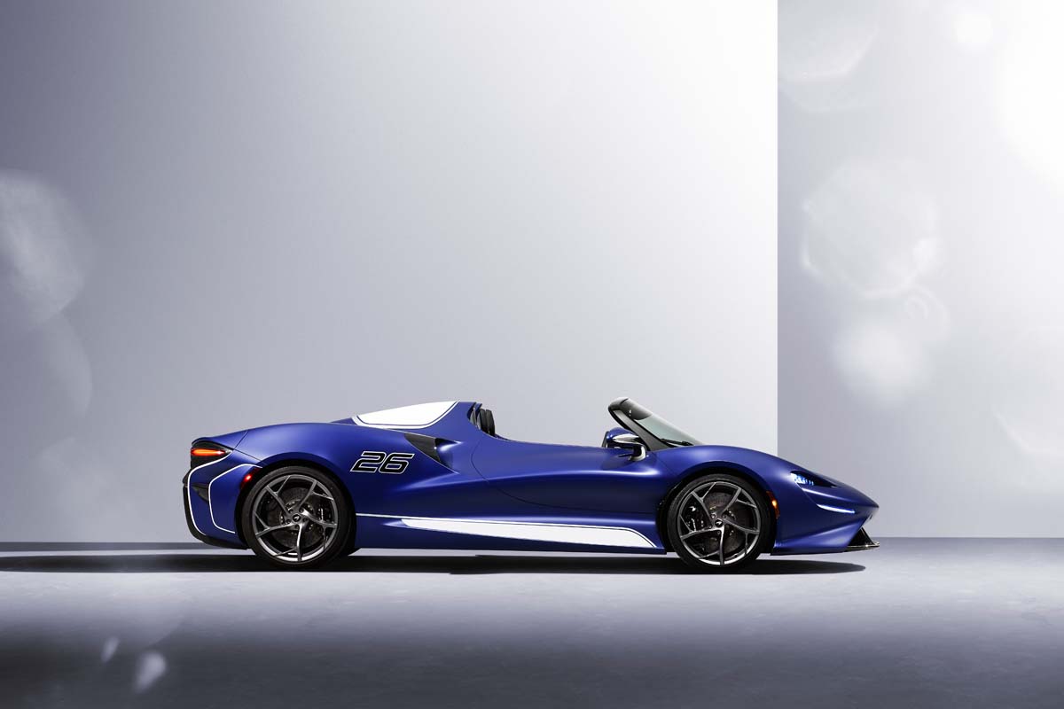 Sharing the spotlight will be the Elva with windscreen. Retaining the essence of the Ultimate Series car’s pure distillation of driving pleasure, if not quite blurring the boundaries between the interior and the outside world, the narrow screen perfectly complements the Elva’s beautifully-sculpted form. The car on display has a stunning Satin Blue finish and, as one of the rarest McLaren cars ever built, is a must-see for visitors to Salon Privé.