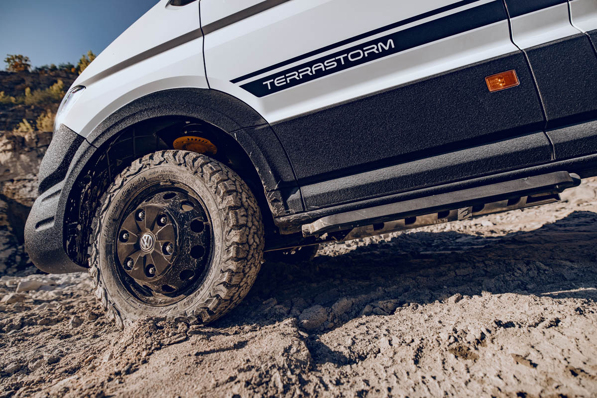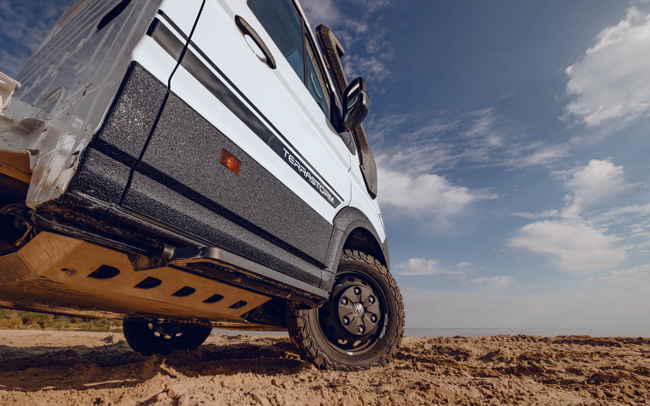The 4×4 TORSUS TERRASTORM CHASSIS, based on a Volkswagen Crafter/MAN TGE 4Motion chassis, features a EURO 6 2.0-litre bi-turbo diesel engine offered in 130kW / 177 hp, mated to a six-speed manual or an eight-speed automatic transmission.