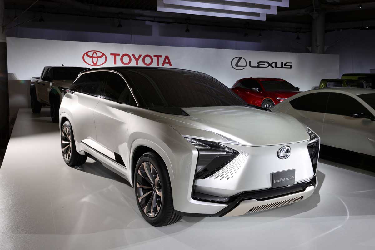 The vehicles you see behind the Lexus lineup―they are the diverse Toyota battery EVs.