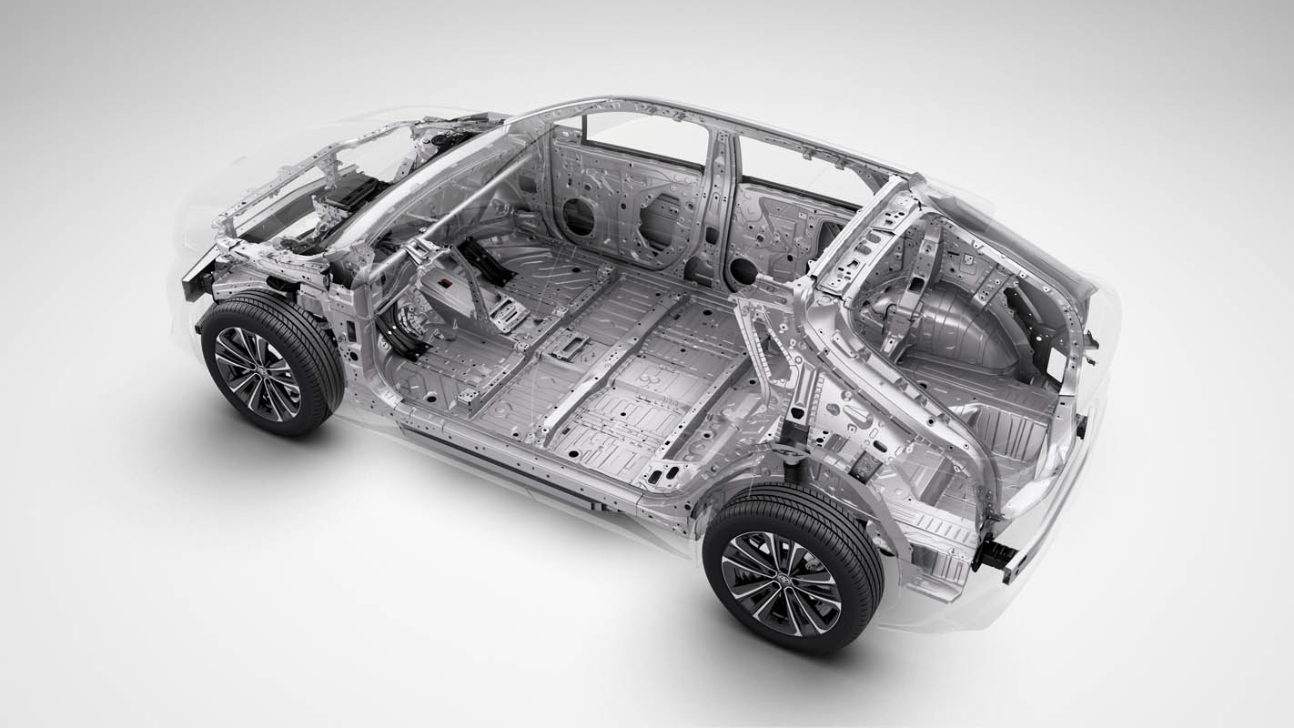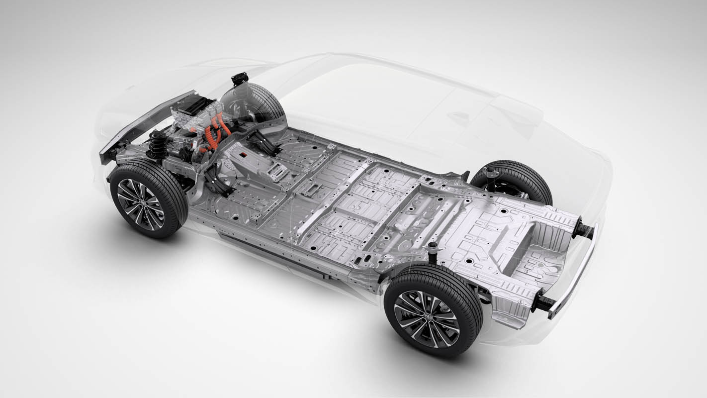 ⦿ Adopts a BEV-dedicated platform (first for Toyota) based on e-TNGA philosophy Advancing a low center of gravity and greater rigidity