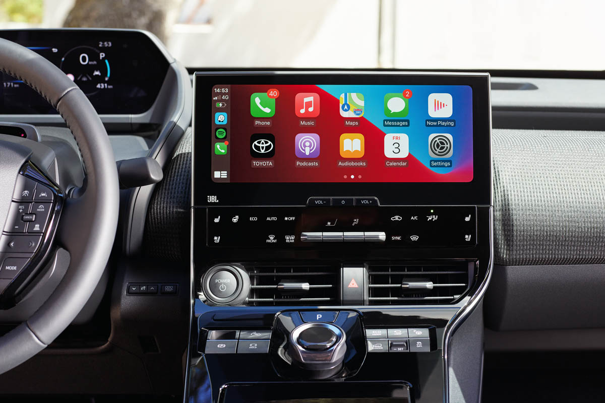 ⦿ Multimedia system: The bZ4X adopts cloud navigation that uses map information on the cloud to obtain traffic information and parking space availability information in a timely manner. Additionally, BEV specialized services such as driving support, charging station display, driving support display, and driving range display are available