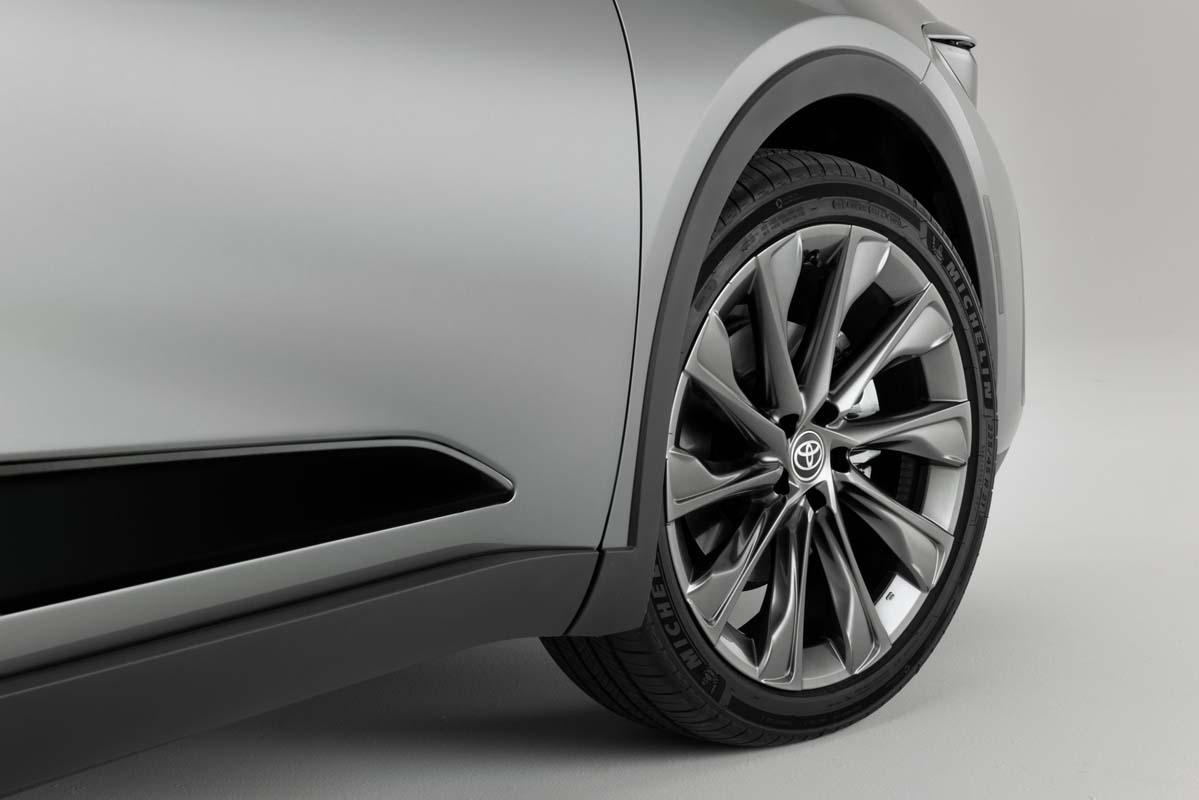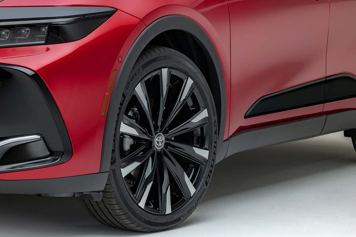 The combination of large-diameter tires and wheels helps give the Toyota Crown its “lift-up” style. The XLE and Limited grades ride on 19-inch multi-spoke two-tone alloy wheels. Limited has available 21-inch 10-spoke dark metallic alloy wheels as part of the Advanced Tech package. The Platinum comes standard with 21-inch machined 10-spoke alloy wheels with black accents.