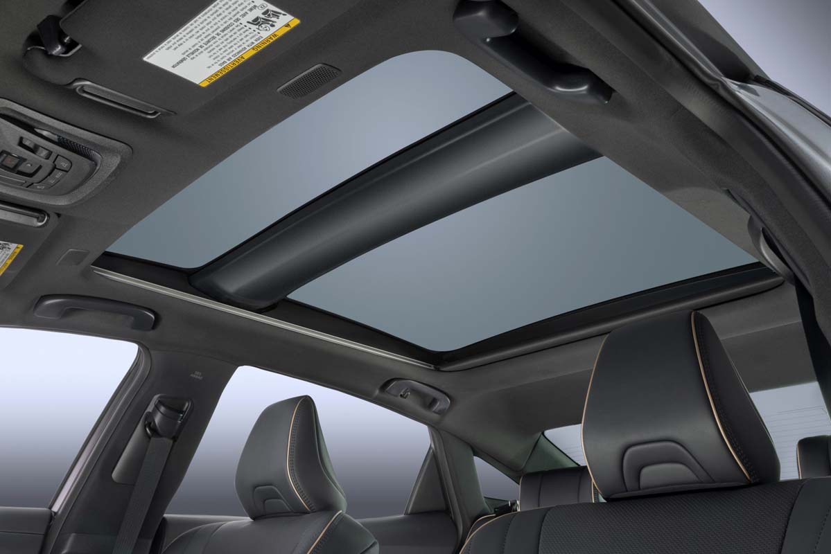 The Crown Platinum and Limited grades include a standard panoramic moonroof. For added function and ambience, in-cabin LED lighting adds a premium feel. Illumination, out of consideration for visibility and operability, includes overhead and front/rear footwell lighting, and cup holders, USB ports and door handles also receive lit accents.
