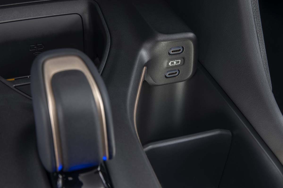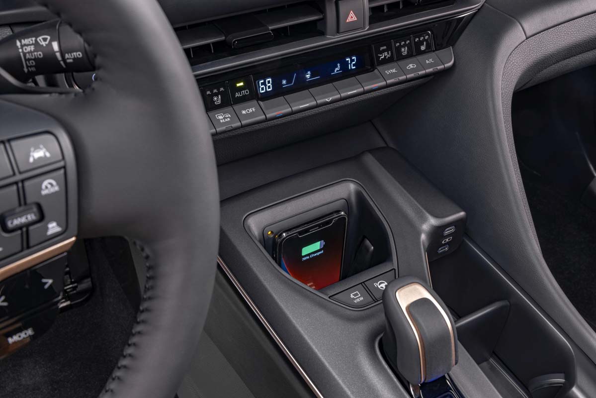 Crown has drivers and passengers plugged-in when it comes to charging devices. On the driver’s side, a vertical-type wireless Qi charging with enhanced space efficiency comes standard. There is also a standard USB-Type A and 12V charging port inside the console. A separate dual USB-Type C terminal is also standard on the passenger side, with the insertion port intentionally pointing to the passenger seat. For rear seat passengers, two USB-Type C ports are standard.