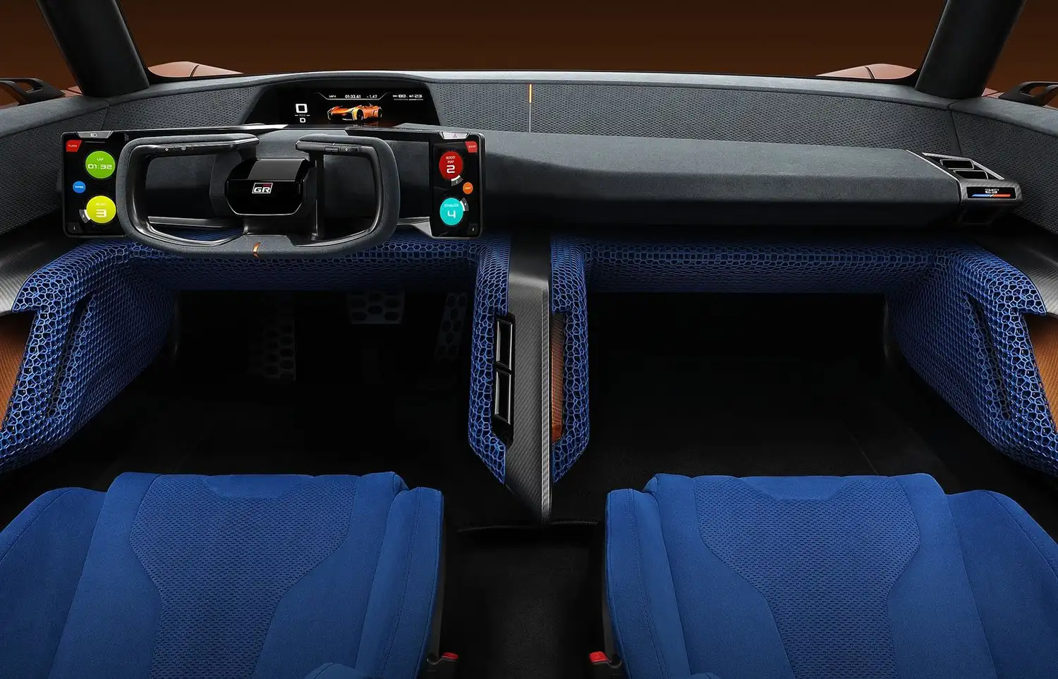Wide and low proportions, along with a sleek, cutting-edge silhouette, reduce aerodynamic drag. The next-generation full-digital cockpit offers intuitive controls and a more immersive driving experience. A low instrument panel profile ensures high visibility. Newly designed kneepads protect the body from G-forces during driving.