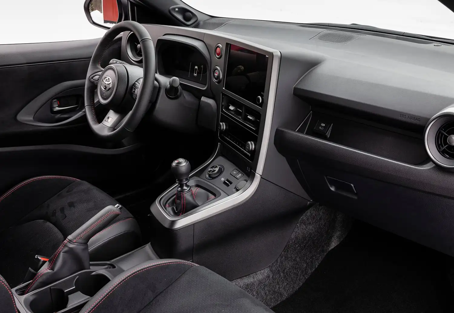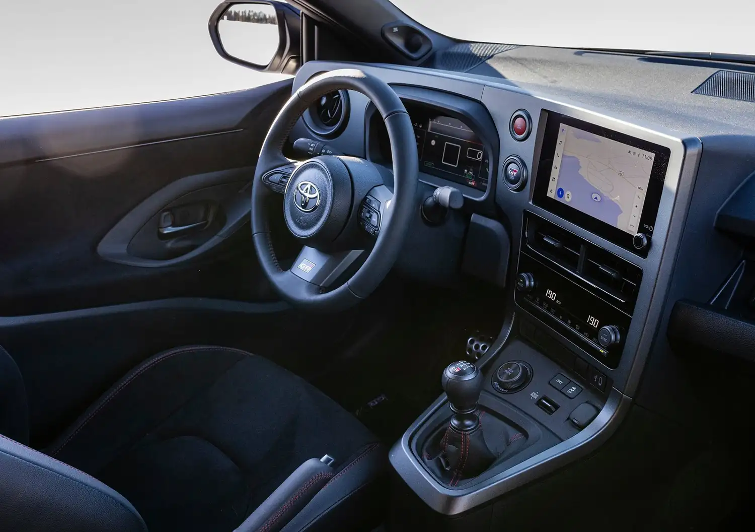 Precise changes have been made to give the driver the best posture. The seat has been lowered by 25 mm and steering wheel adjusted accordingly. The shift direction has been changed to suit competition driving so the driver pushes the lever forward for downshifts and pulls back for upshifts – a detail promoted by Master Driver and Toyota Motor Corporation Chairman Akio Toyoda (alias “Morizo”).